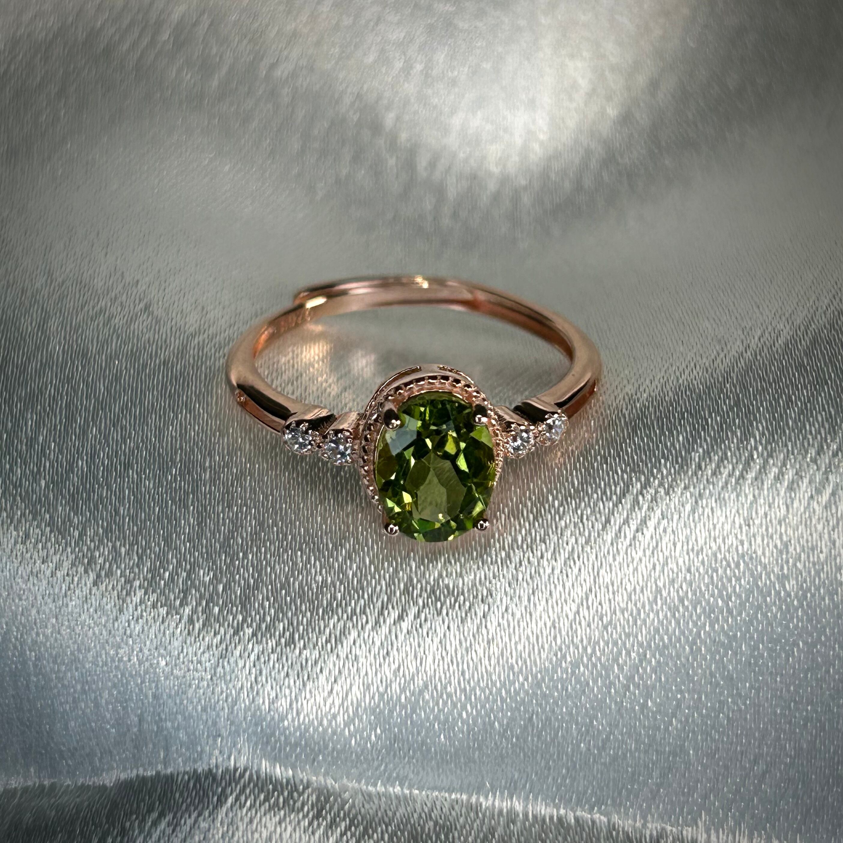 シルバー製ピンクゴールドカラー ペリドット グレースリング 8月誕生石 フリーサイズ
