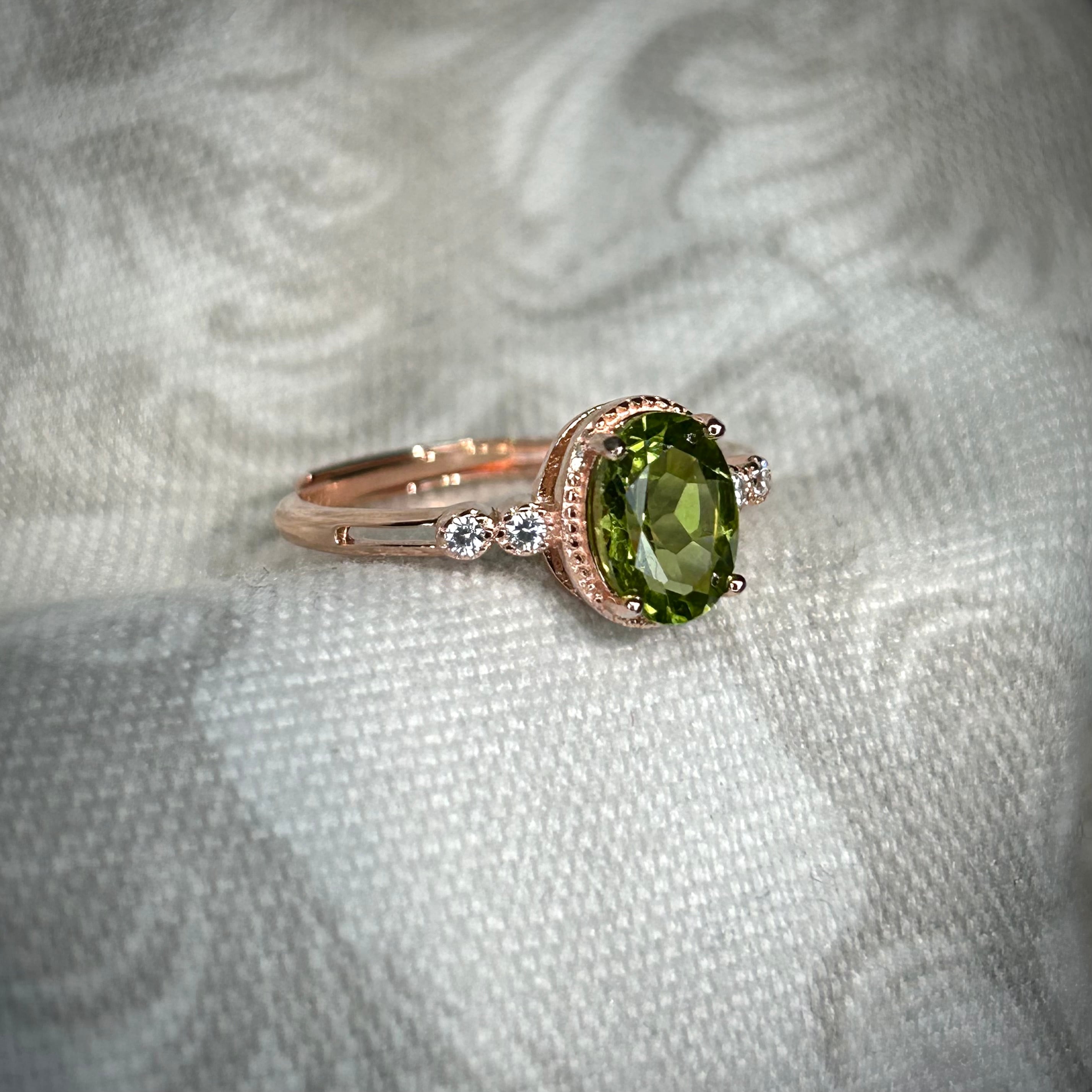 シルバー製ピンクゴールドカラー、ペリドットのグレースリング。