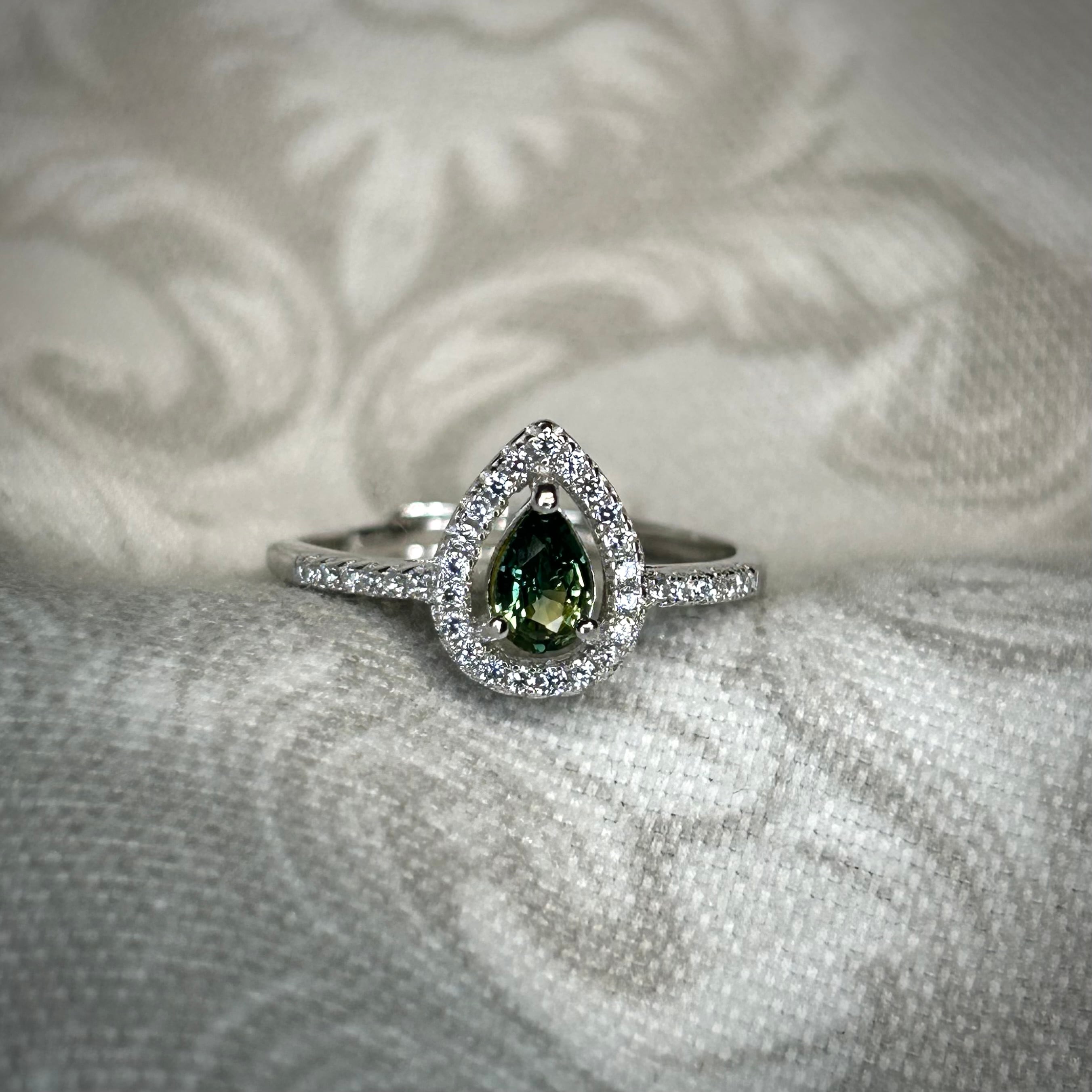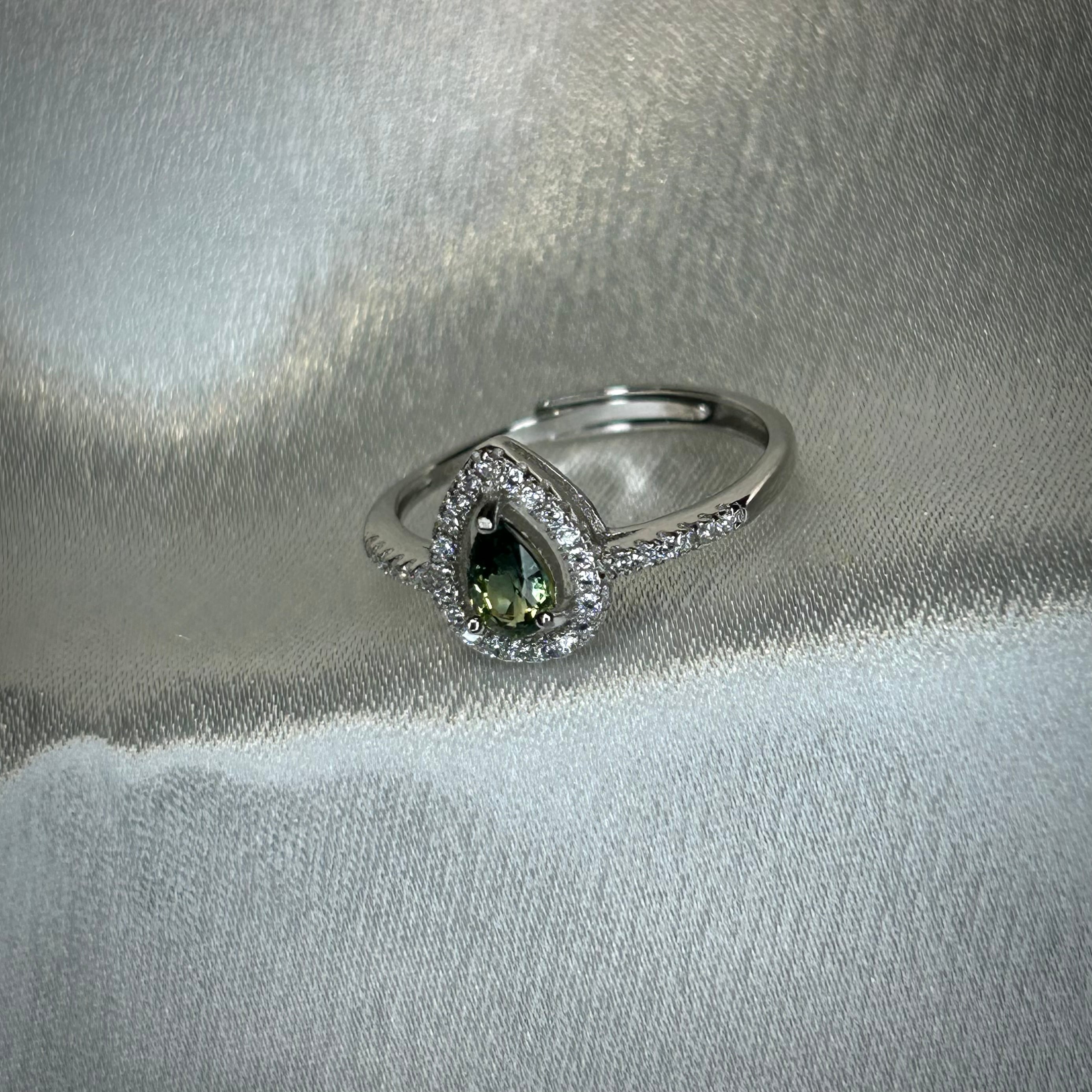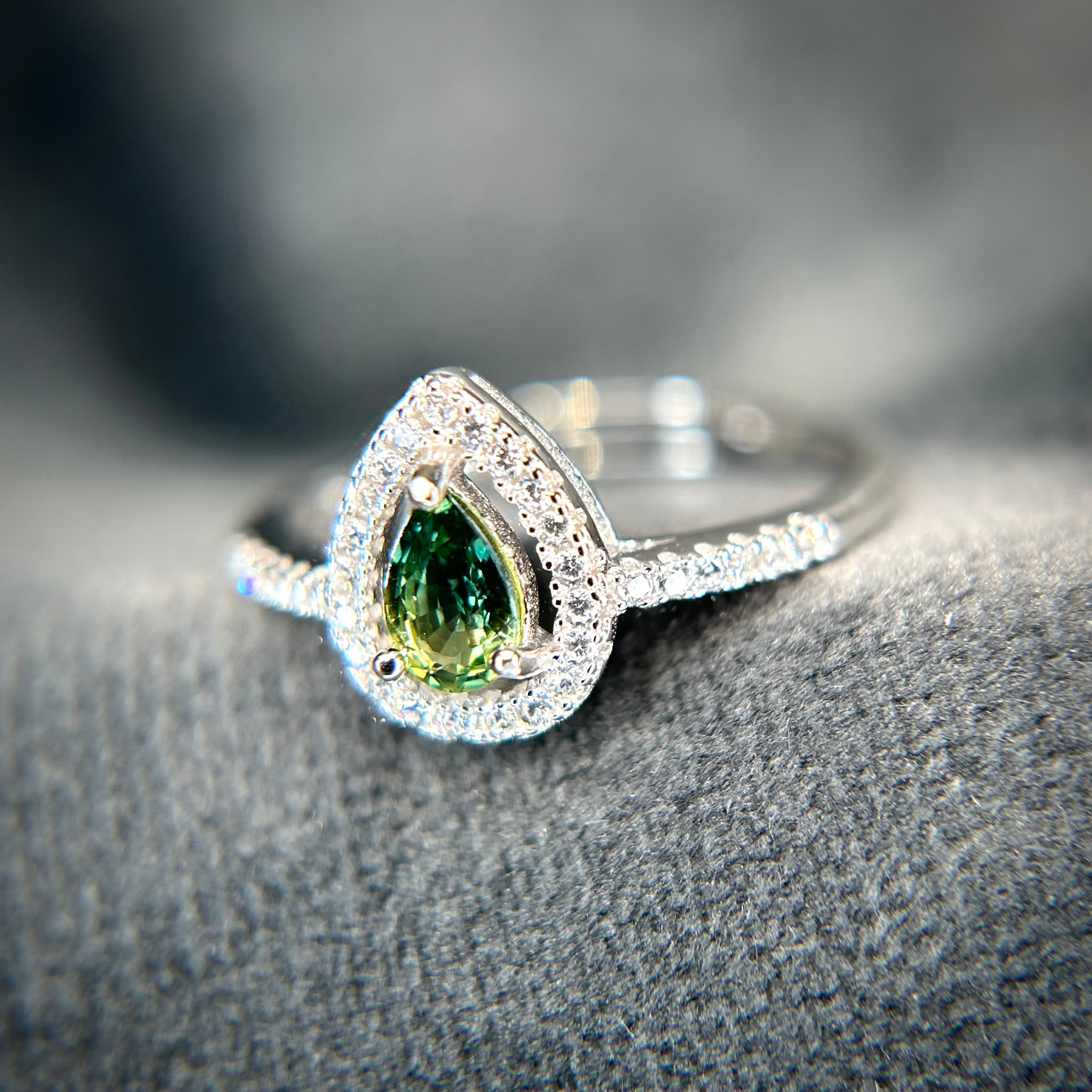 シルバー製 サファイア ドロップ型リング 9月誕生石 フリーサイズ