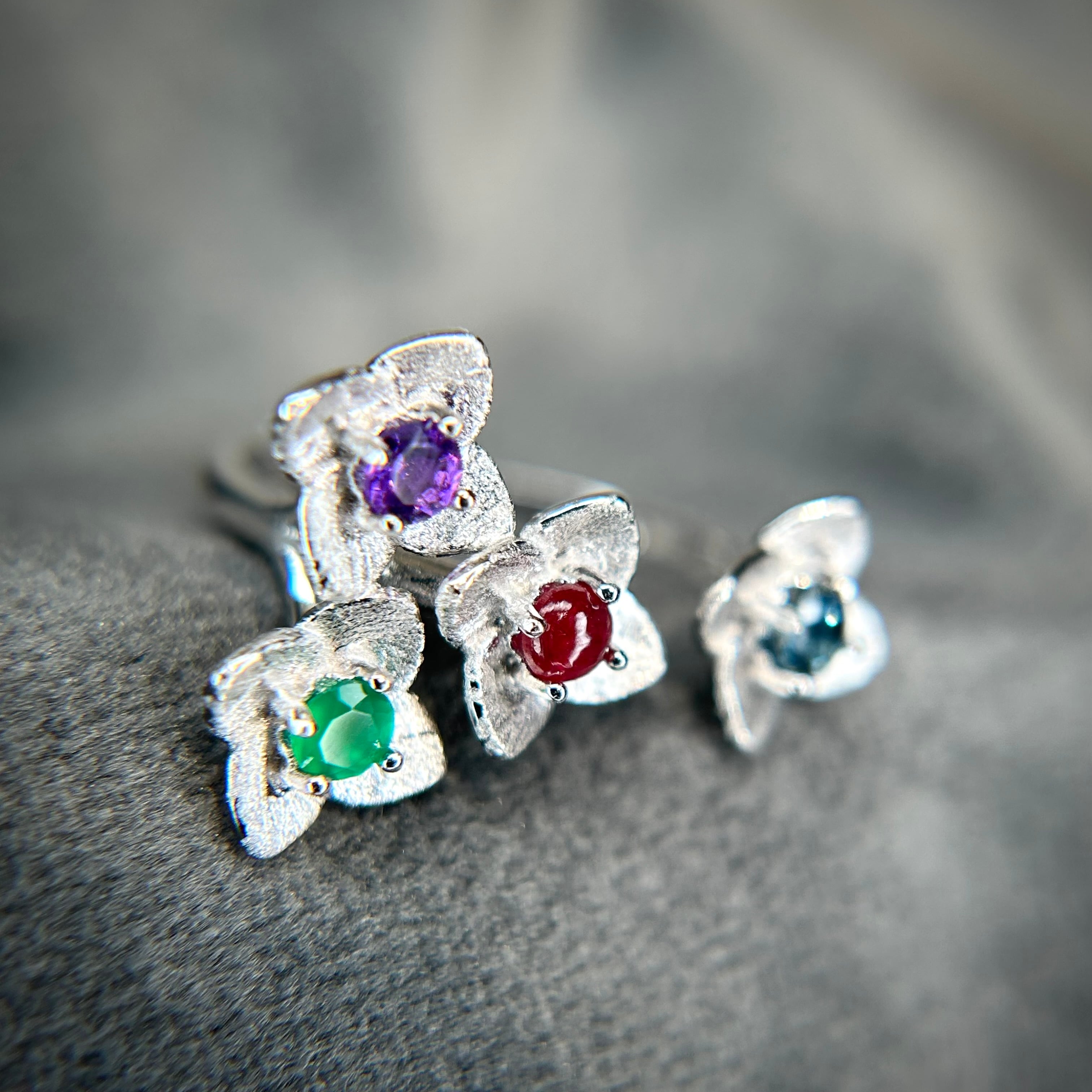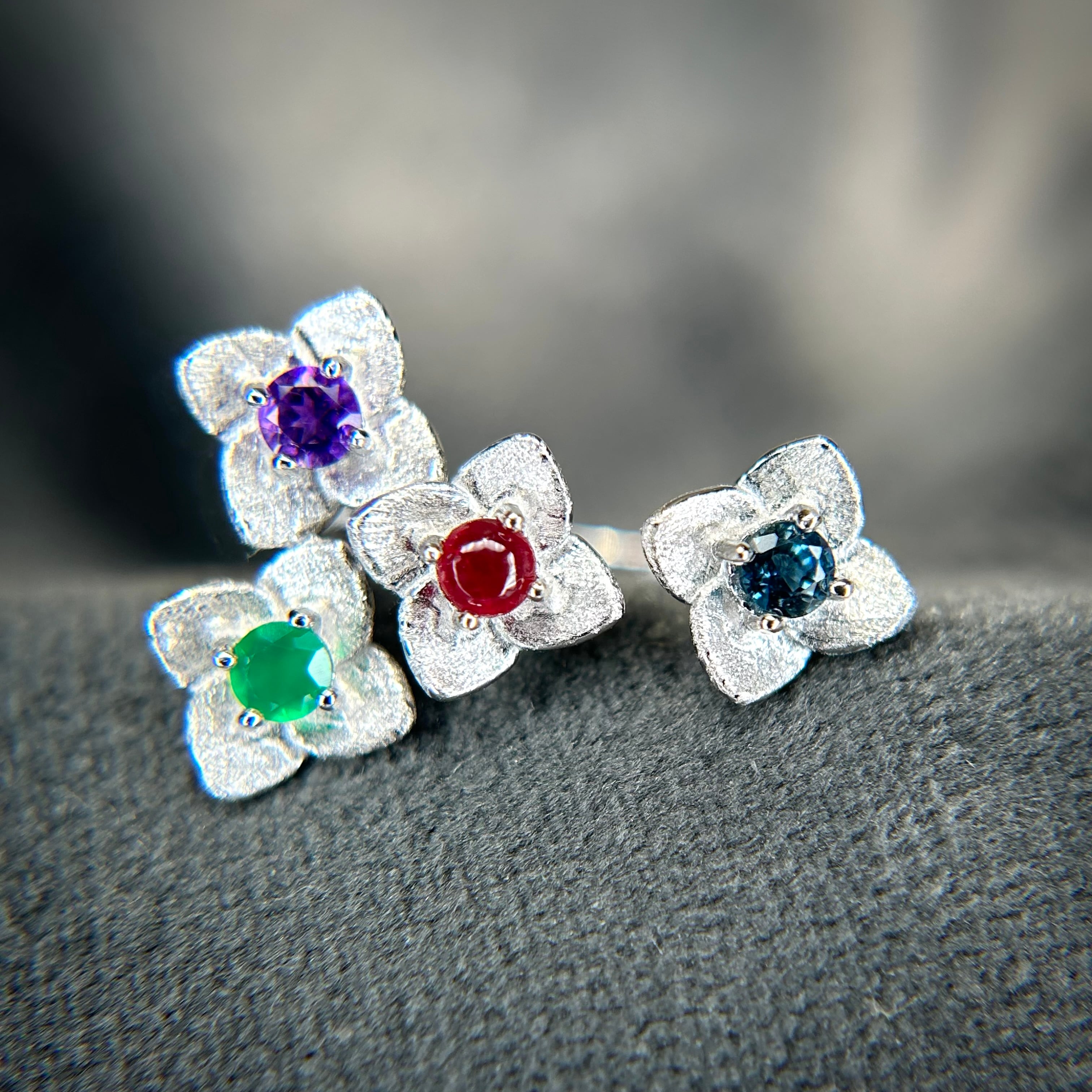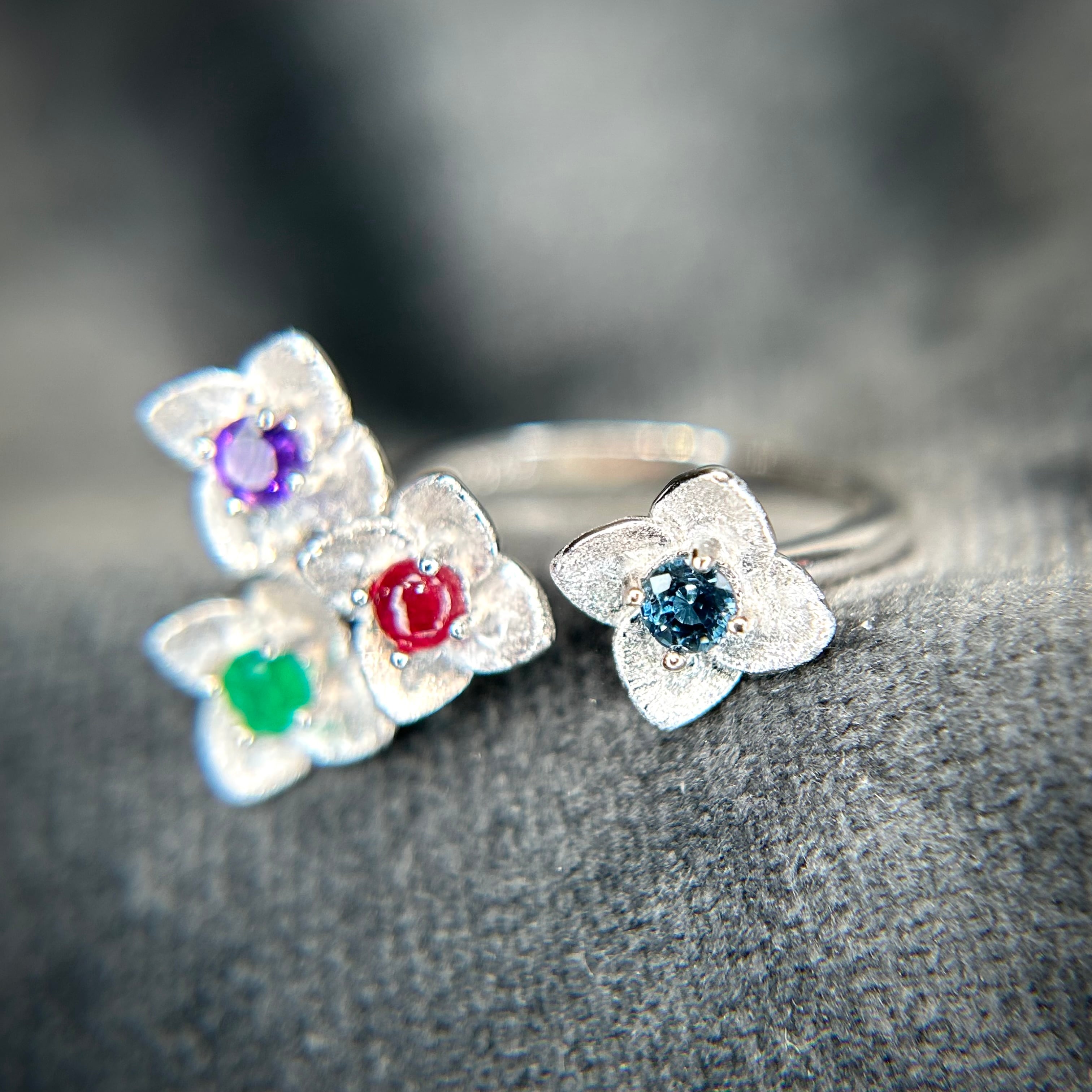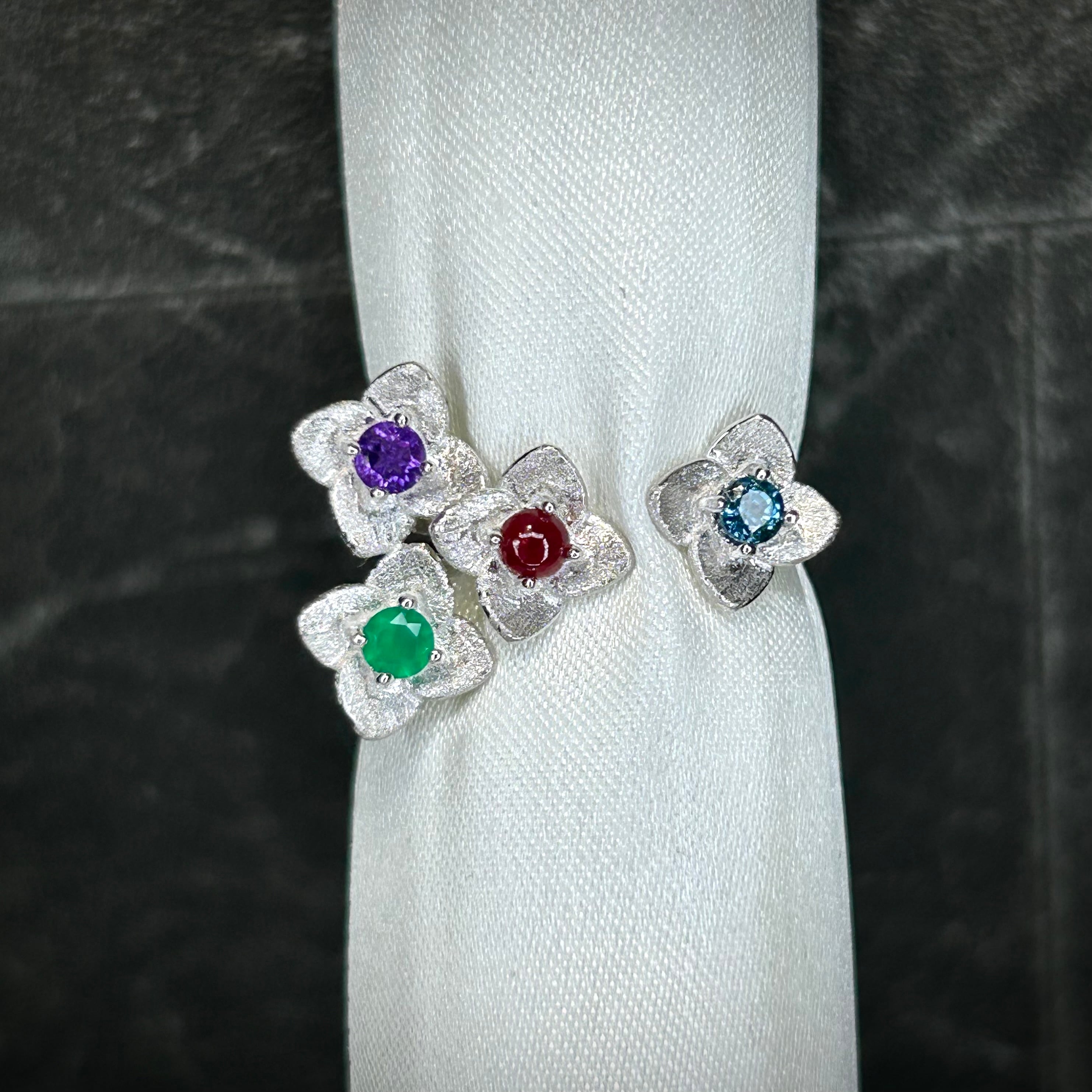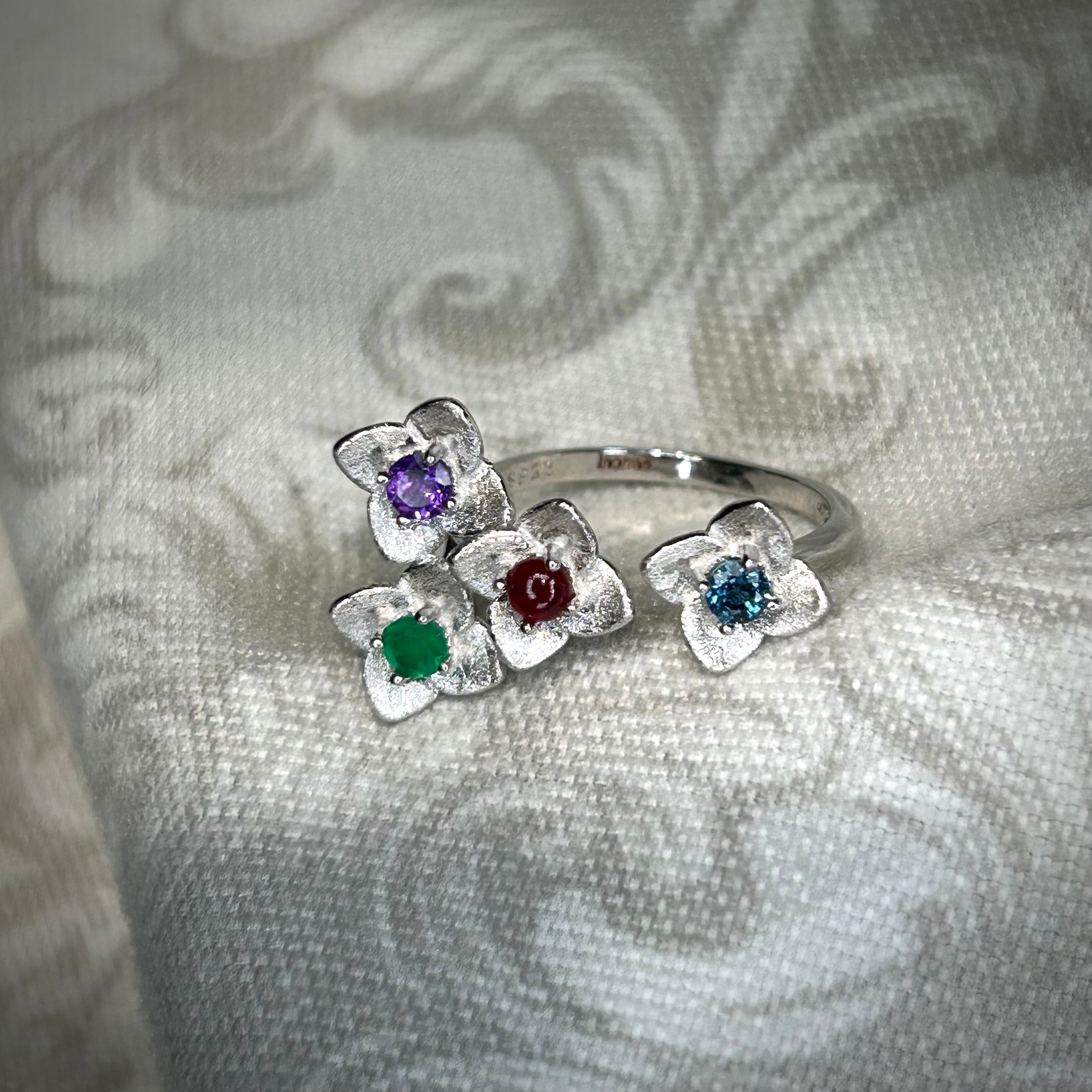 1本のリングで様々な石とカラーが楽しめる、素敵なフラワーリングです。