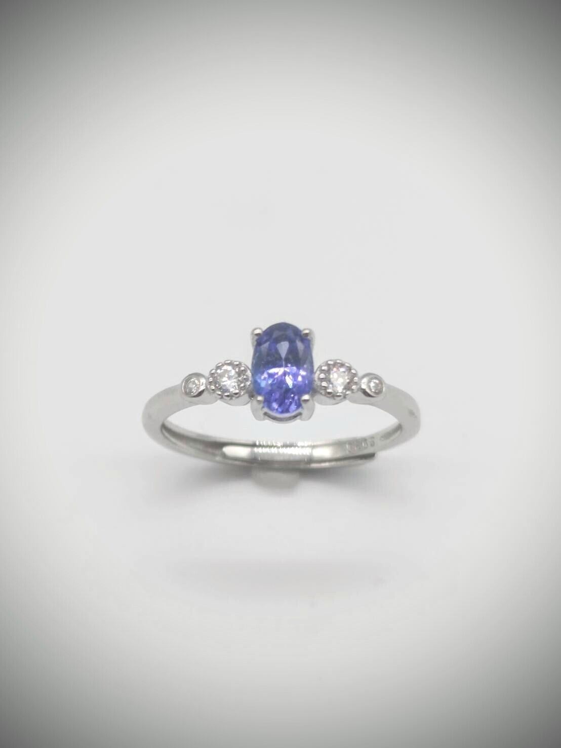 タンザナイトらしいパープルブルーの鮮やかな色味と落ち着きのあるデザインがマッチしてます。