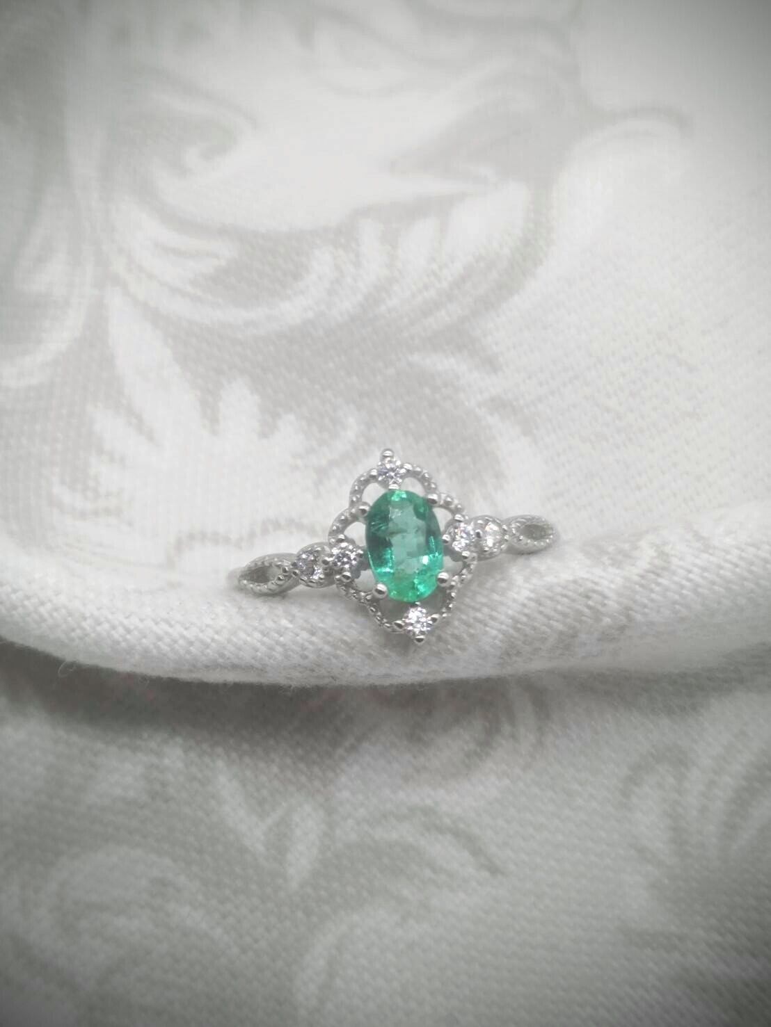 シルバー製 エメラルド クラシカルリング 5月誕生石 フリーサイズ ソーティング付き