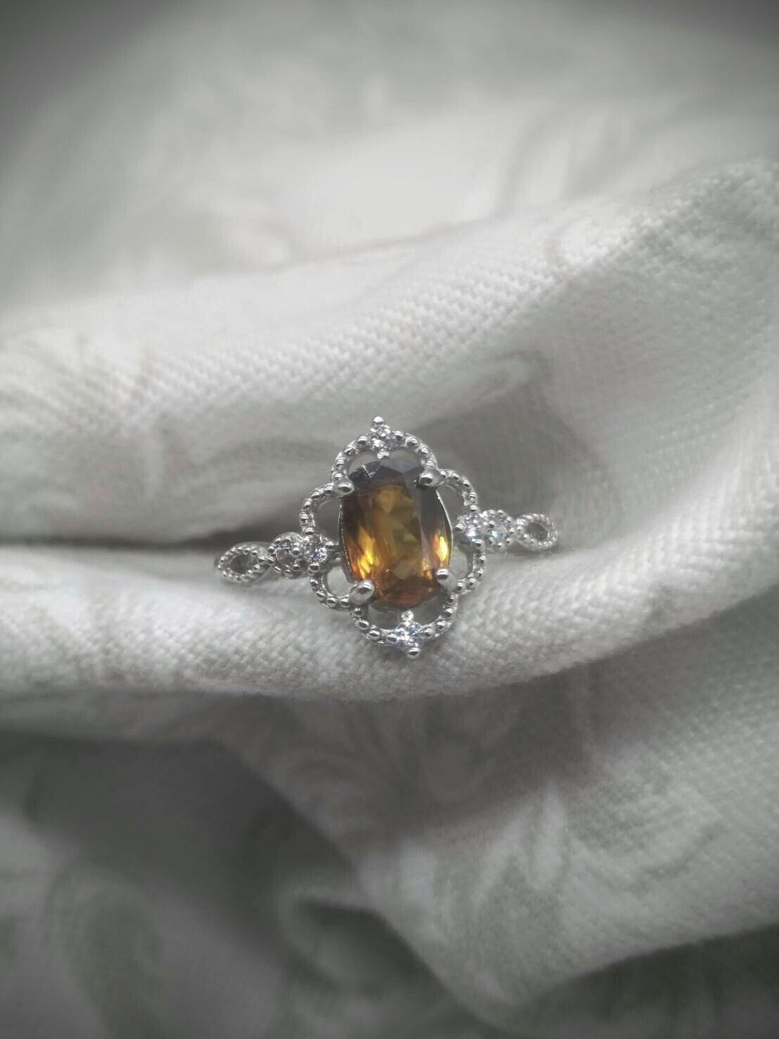 クラシカルな枠にシックなカラーのスフェーンを組合わせました。