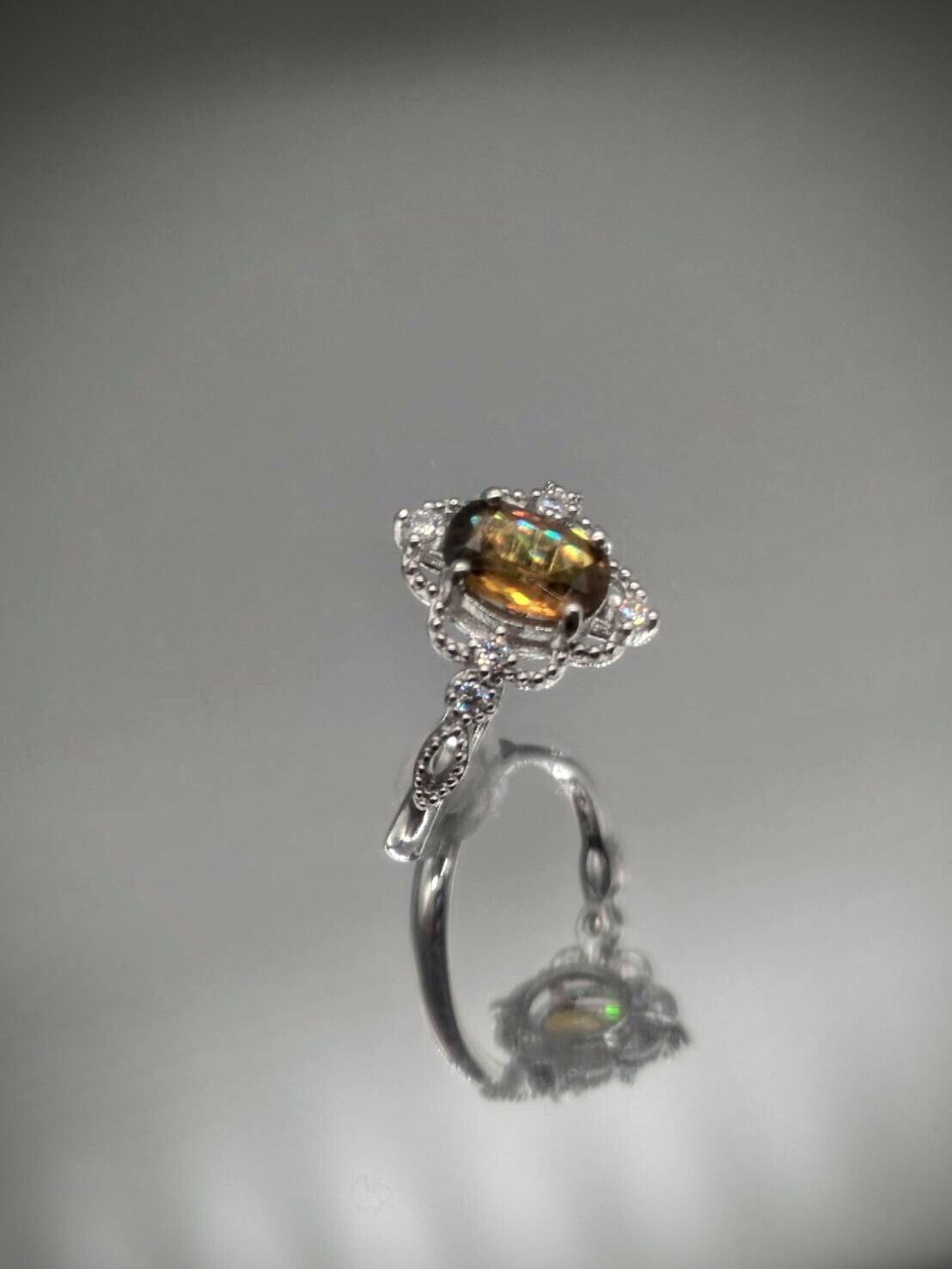 ギラギラではなく渋めなカラーですが、奥にはスフェーンの魅力あるファイアが見られます。