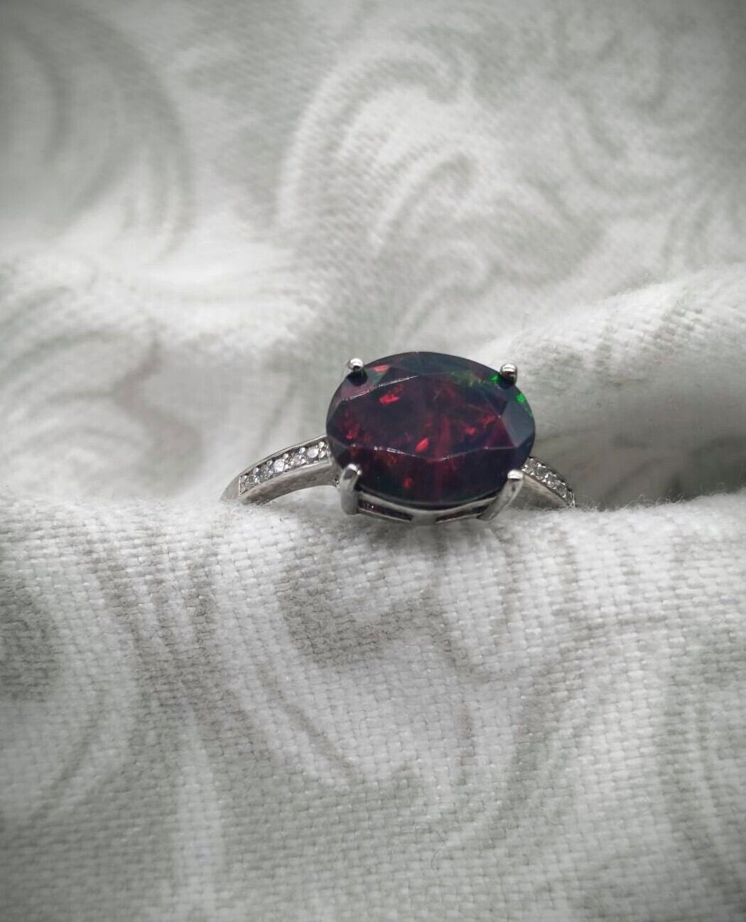 シルバー製 オーバルカット 着色処理 オパールリング ソーティング付き フリーサイズ