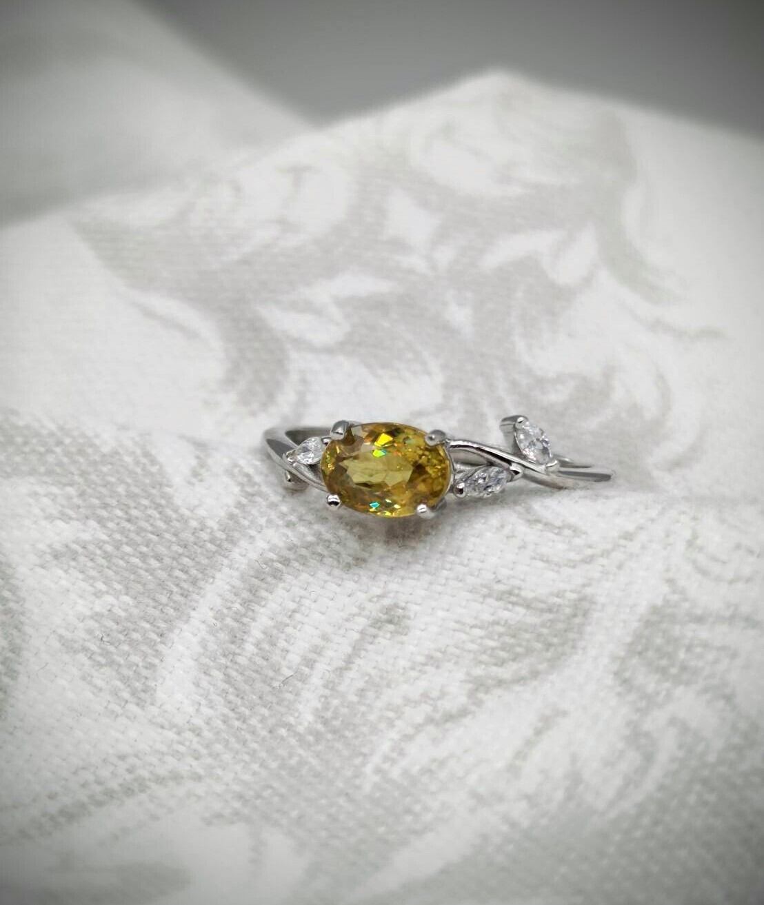 太陽光でスフェーンの輝きを楽しんでもらいたいリングです。