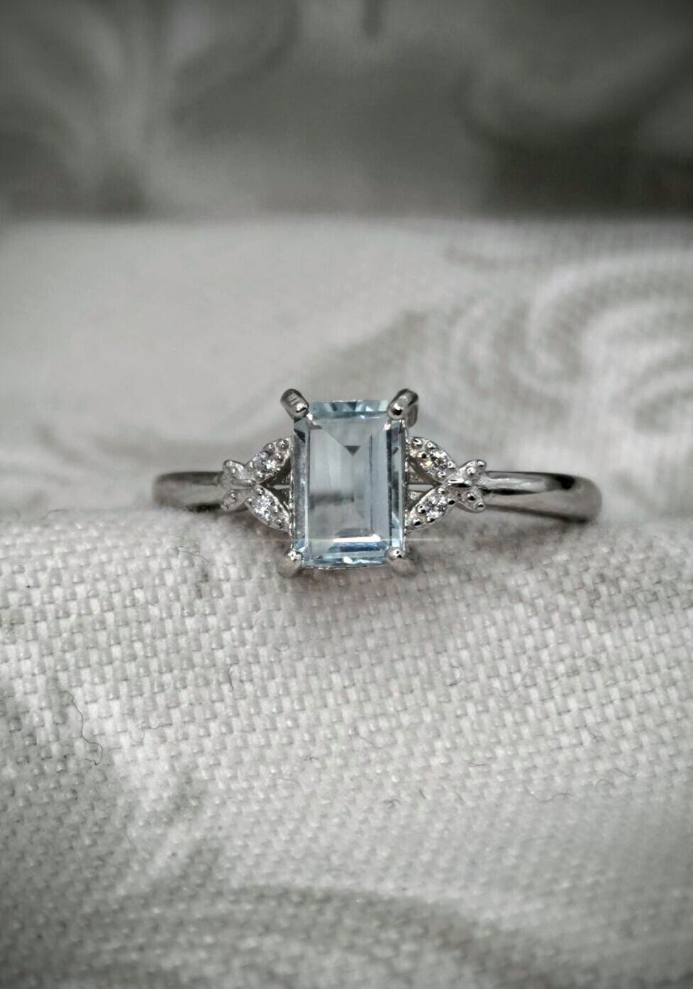 シルバー製 アクアマリン バタフライリング 3月誕生石 フリーサイズ