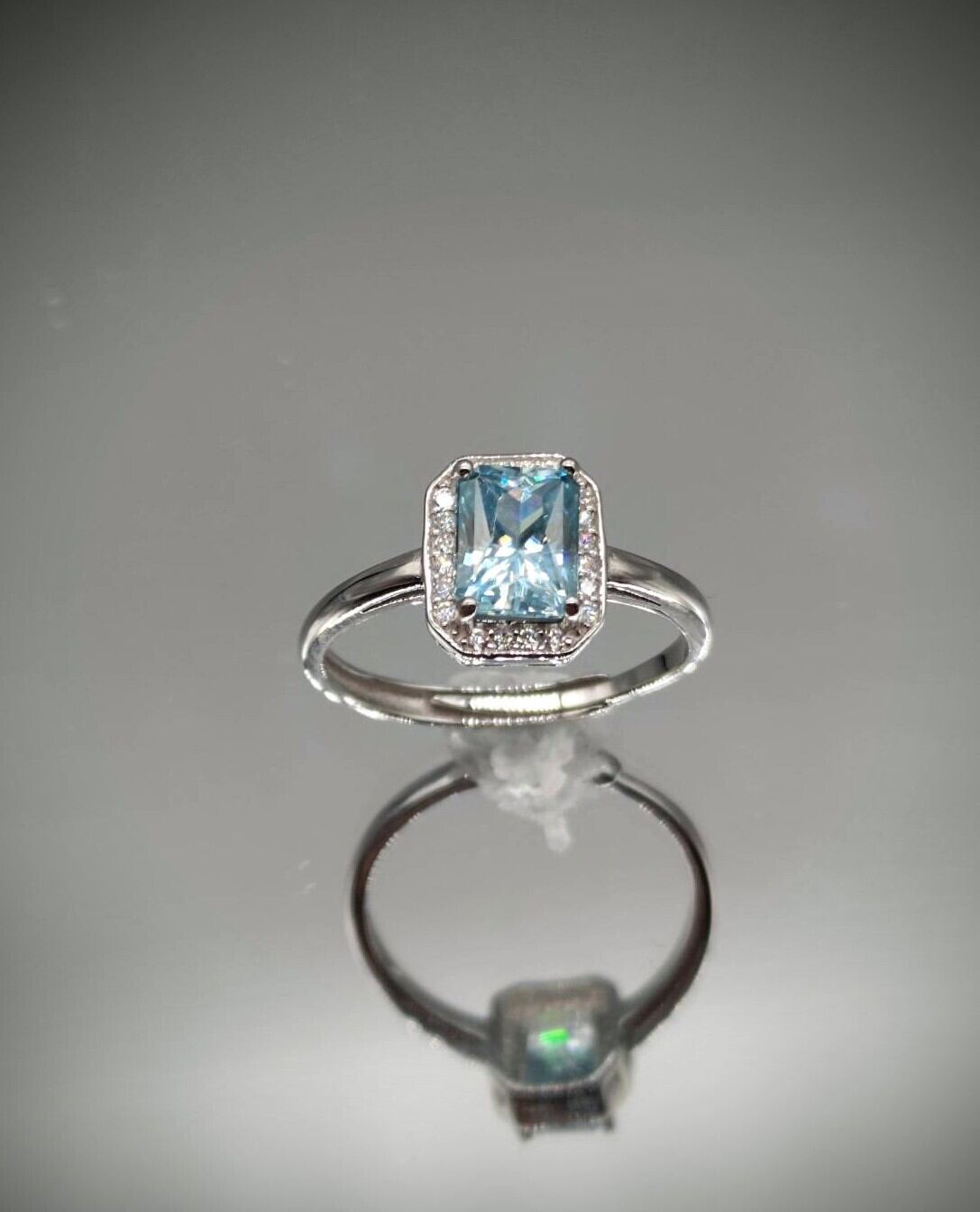 シルバー製 ブルージルコンリング ラディアントカット 12月誕生石 フリーサイズ