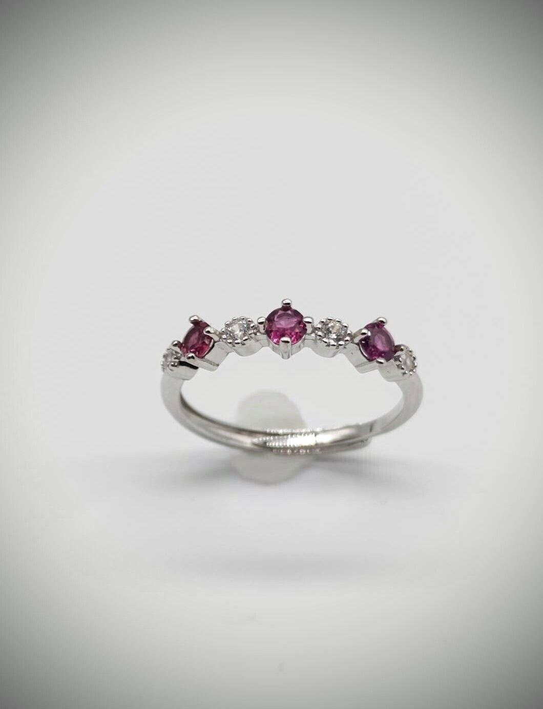 シルバー製の3石ロードライトガーネットリング。