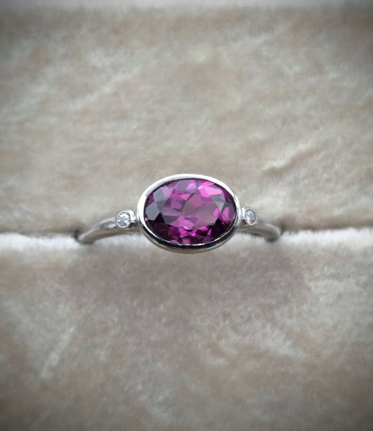 シルバー製ロードライトガーネットのオーバル伏せこみリング。