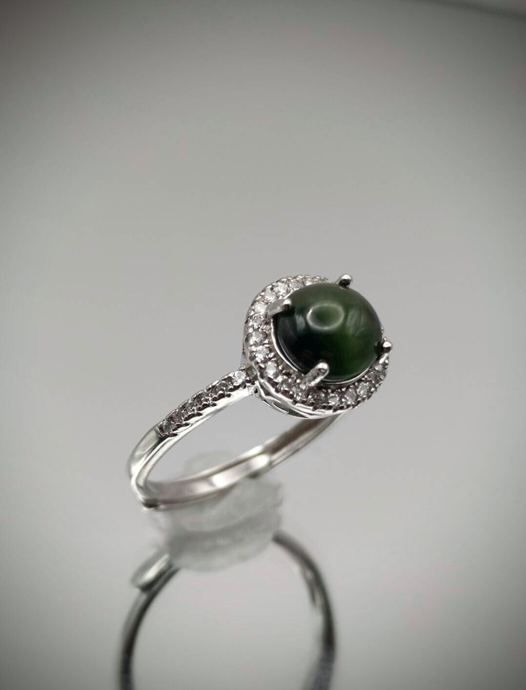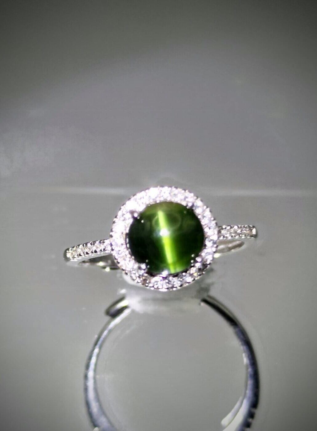 シルバー製クロムダイオプサイトキャッツアイのサークルリング。
