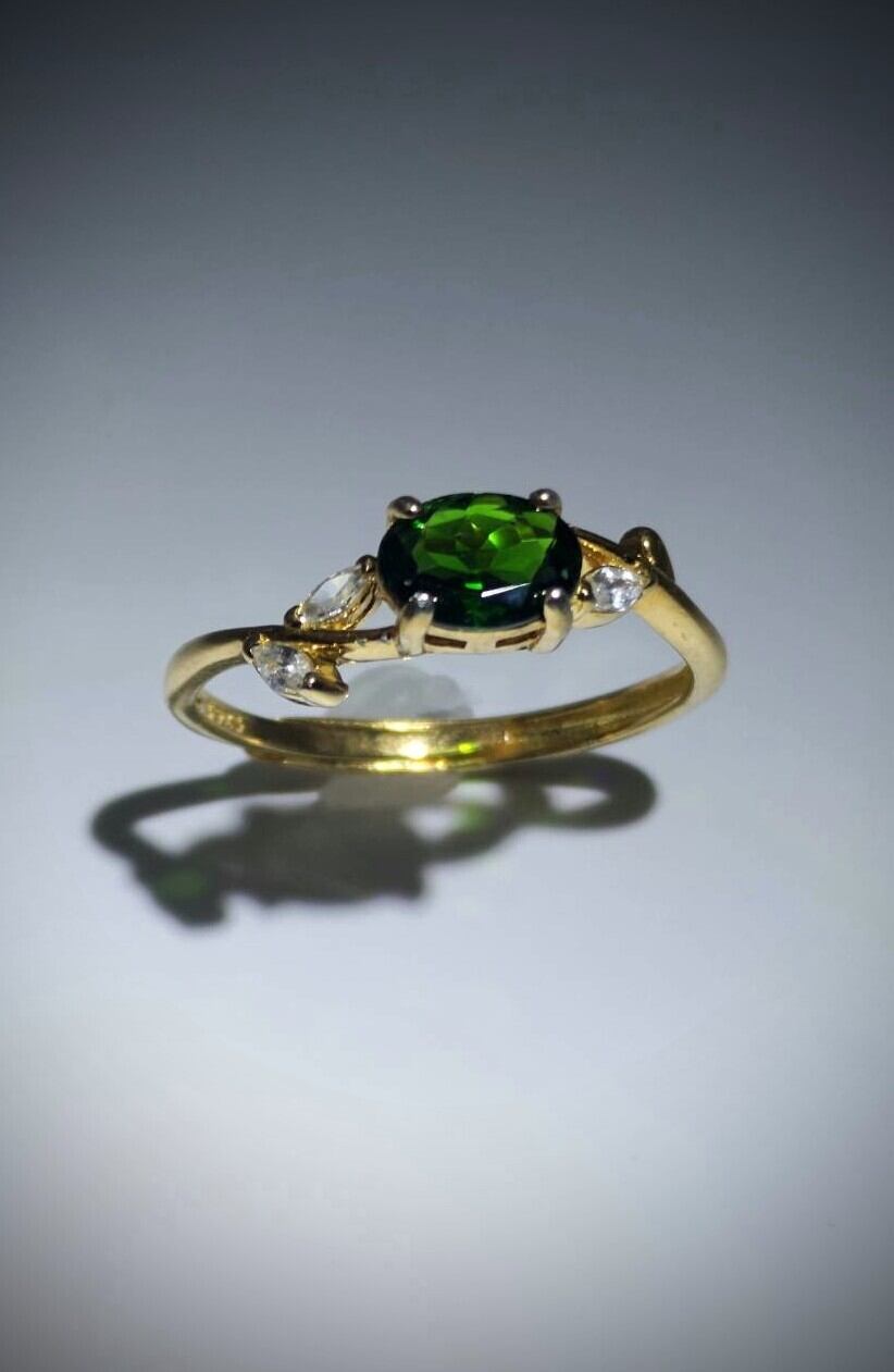 シルバー製ゴールドカラー クロムダイオプサイト ナチュラルデザインリング フリーサイズ