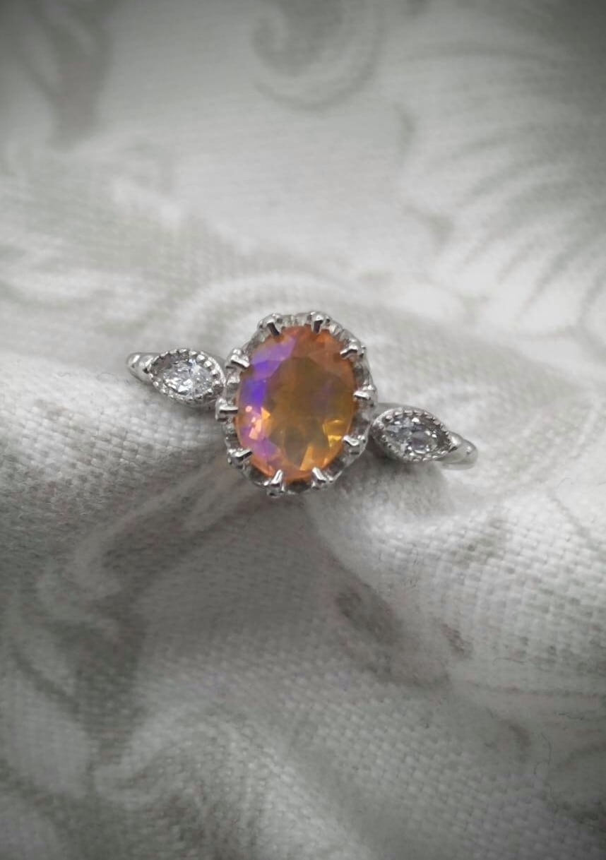 10月の誕生石のオパール、こちらはエチオピア産オパールでオバールのファセットカット。