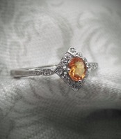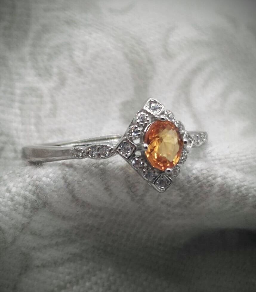 シルバー製 オレンジサファイア 菱形リング 9月誕生石 フリーサイズ