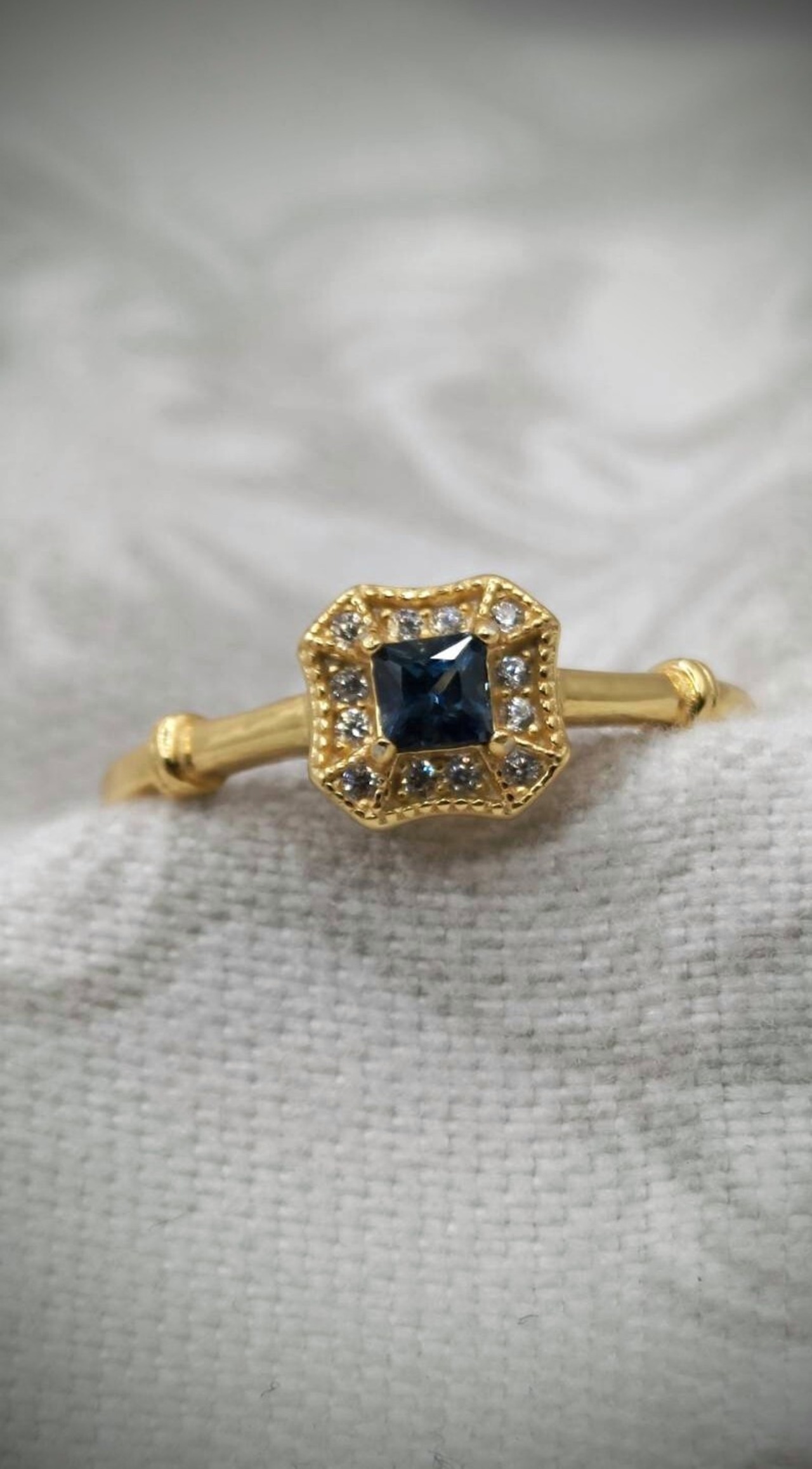 シルバー製ゴールドカラー、サファイアのスクエアリング。