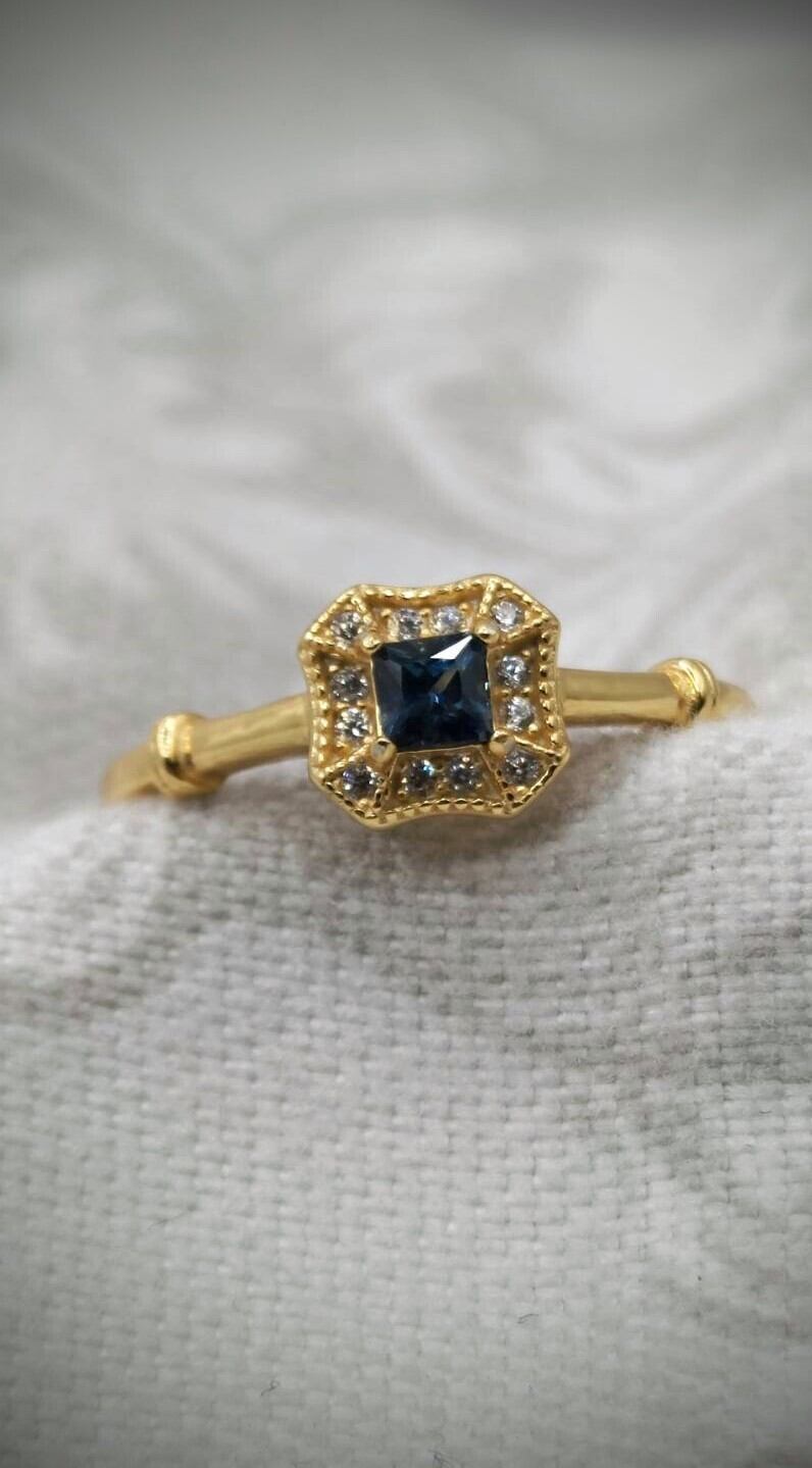 シルバー製ゴールドカラー サファイア スクエアリング 9月誕生石 フリーサイズ