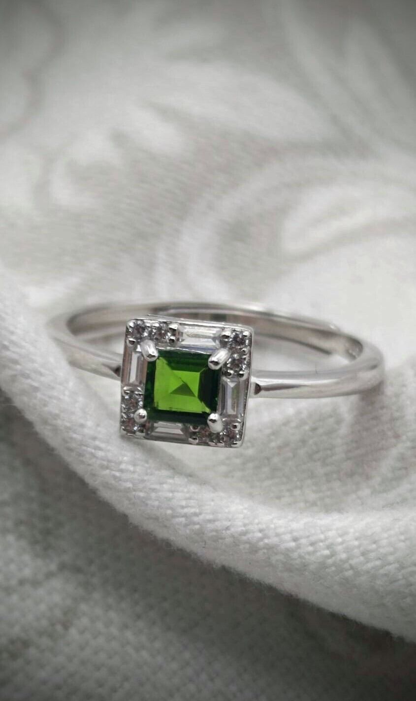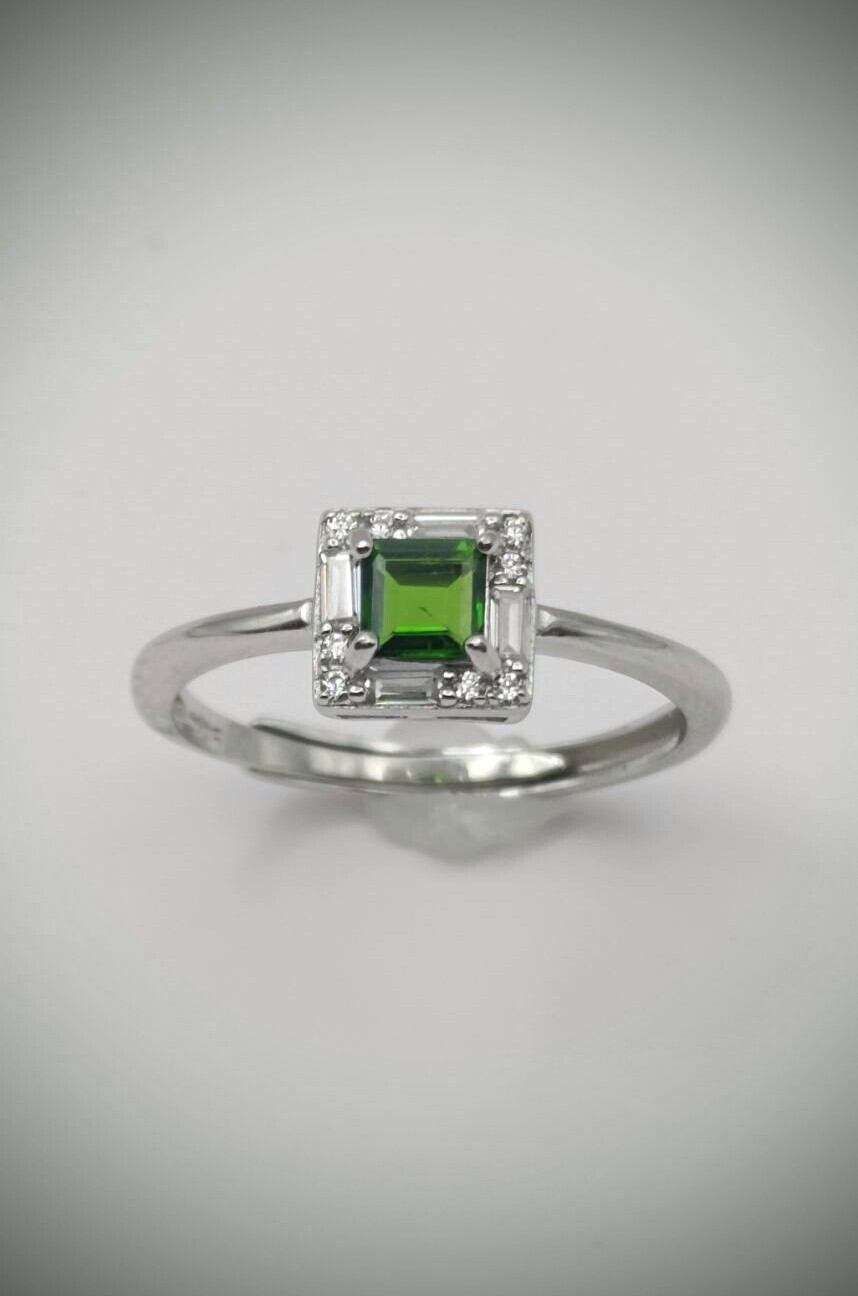 シルバー製クロムダイオプサイトのスクエアリング。