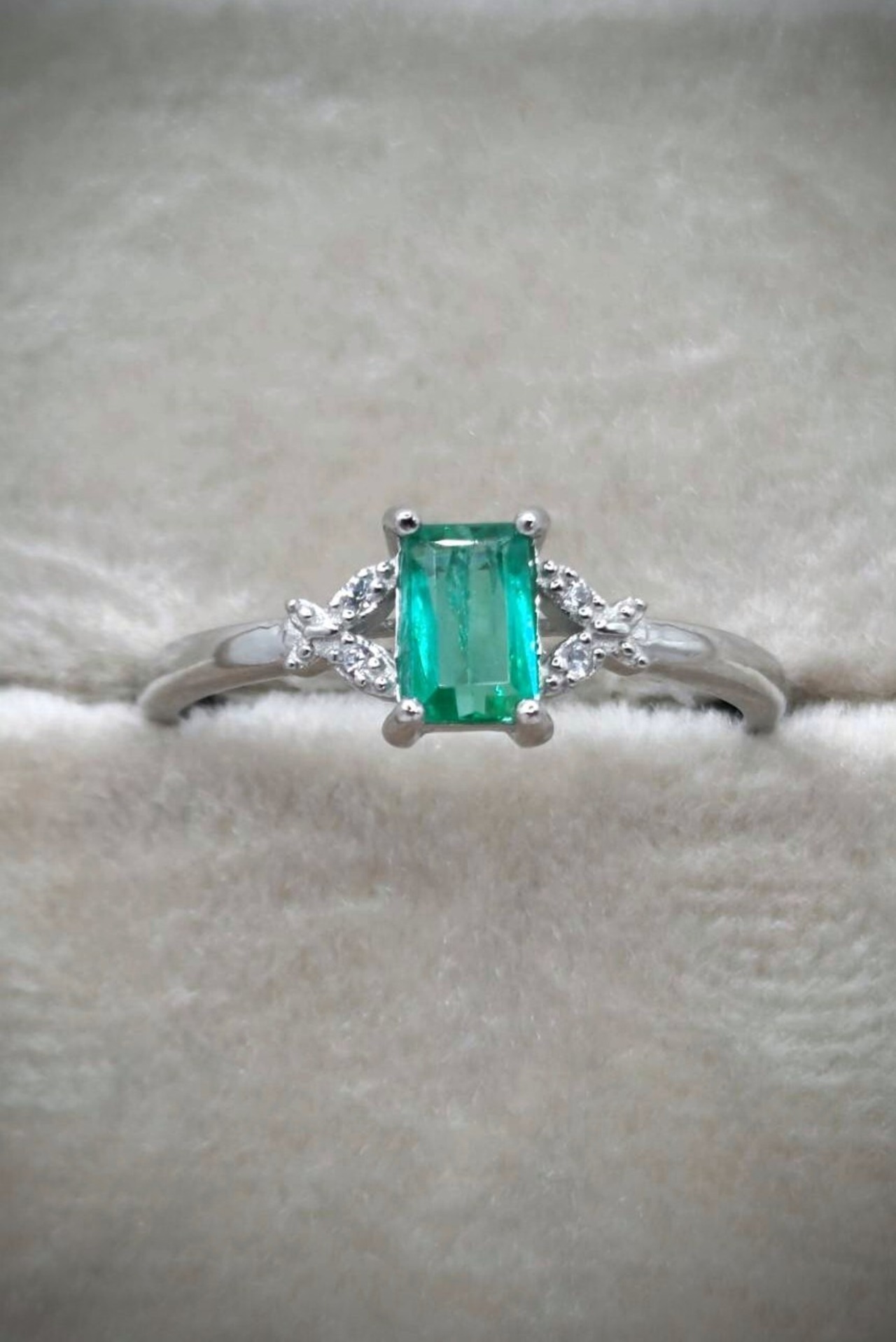 シルバー製 エメラルド バタフライリング 5月誕生石 フリーサイズ ソーティング付き