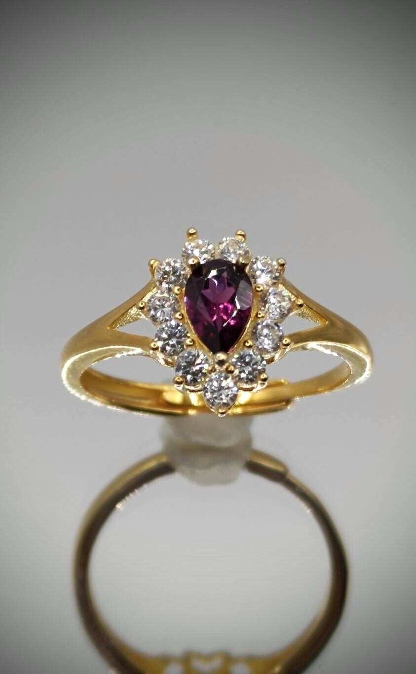 シルバー製ゴールドカラー ロードライトガーネット ペタルリング 1月誕生石 フリーサイズ