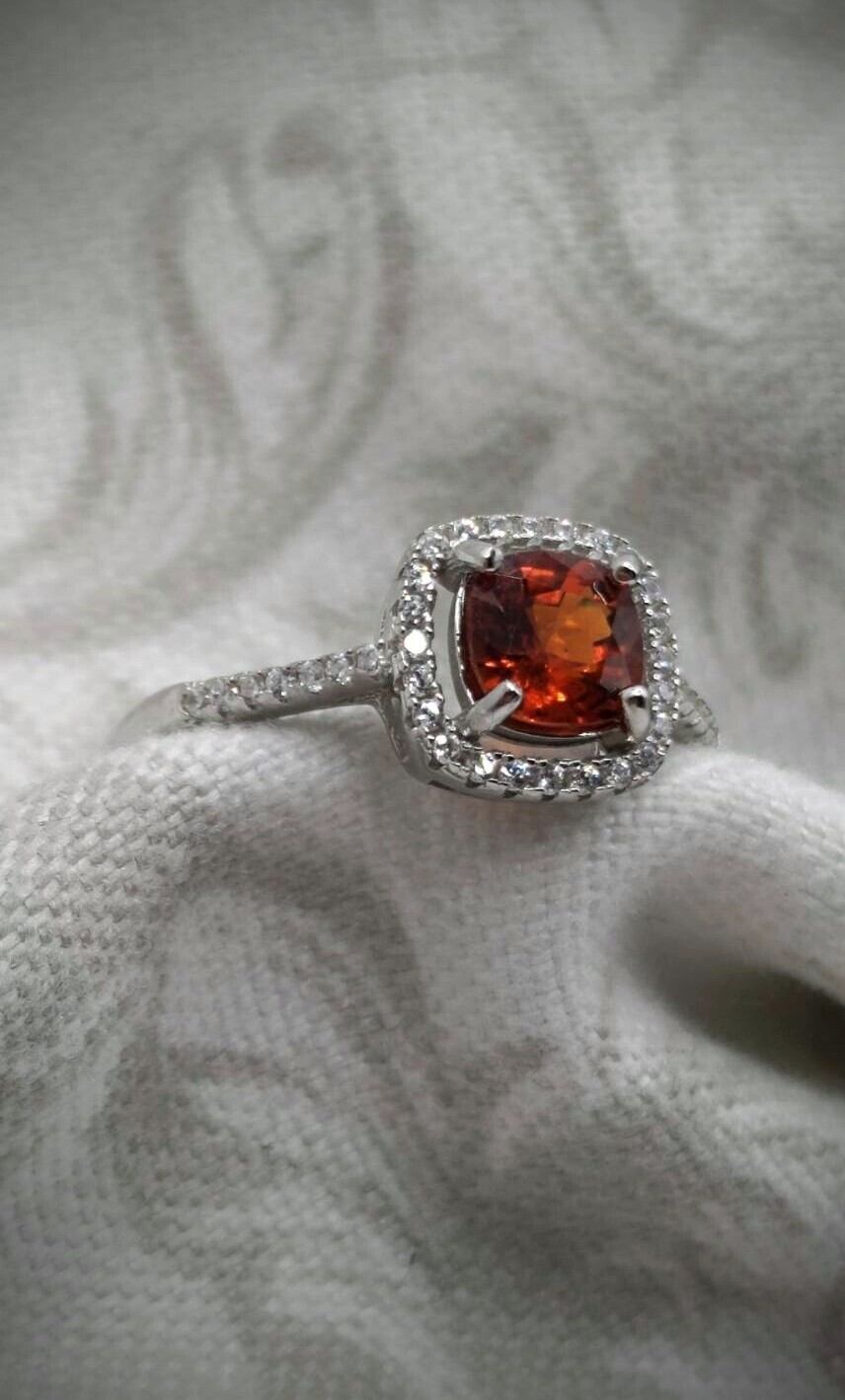 シルバー製 スペサルティンガーネット スクエアリング 1月誕生石 フリーサイズ ソーティング付き