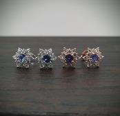 周りのジルコニアに負けないパープリッシュブルーが目を引く、タンザナイトのピアスです。