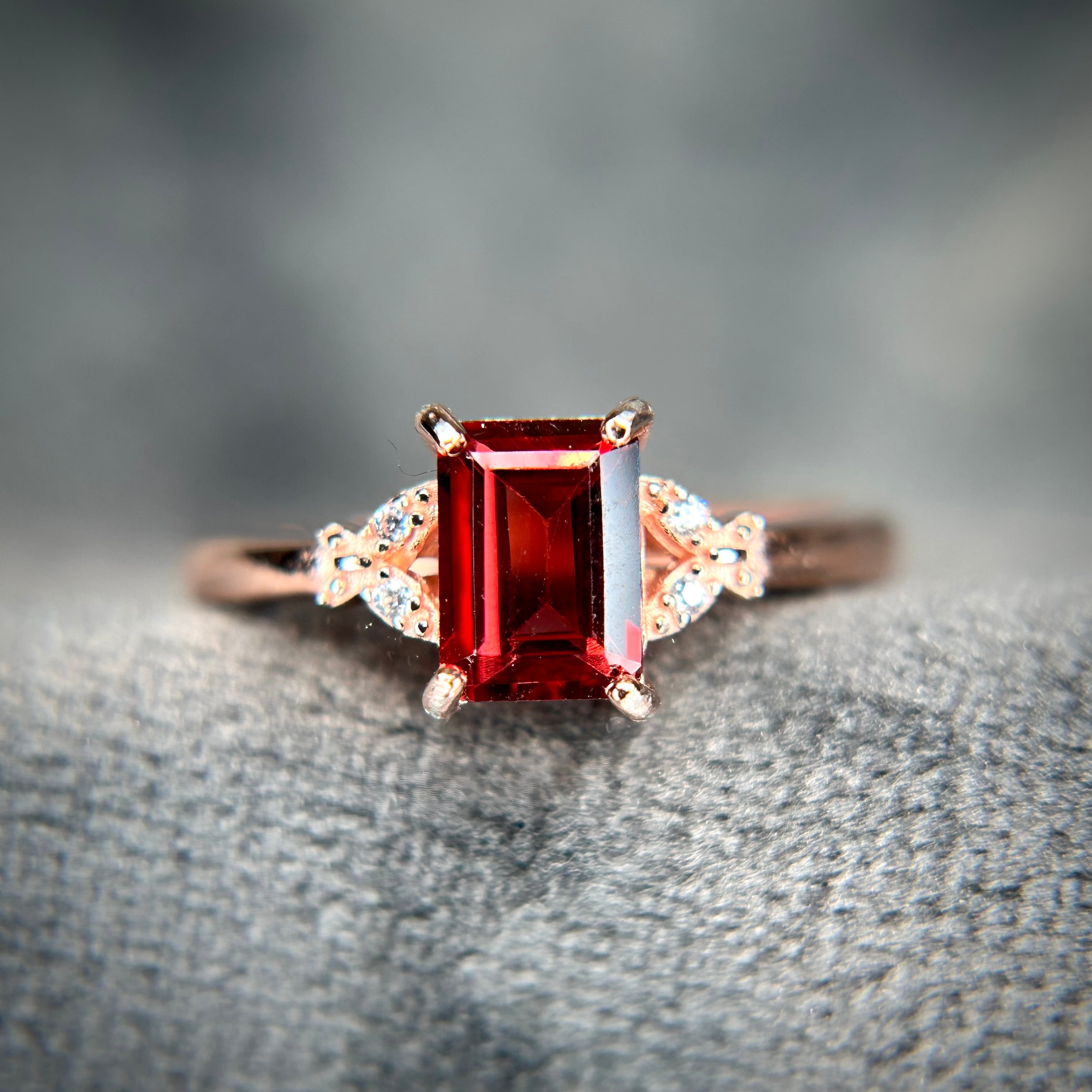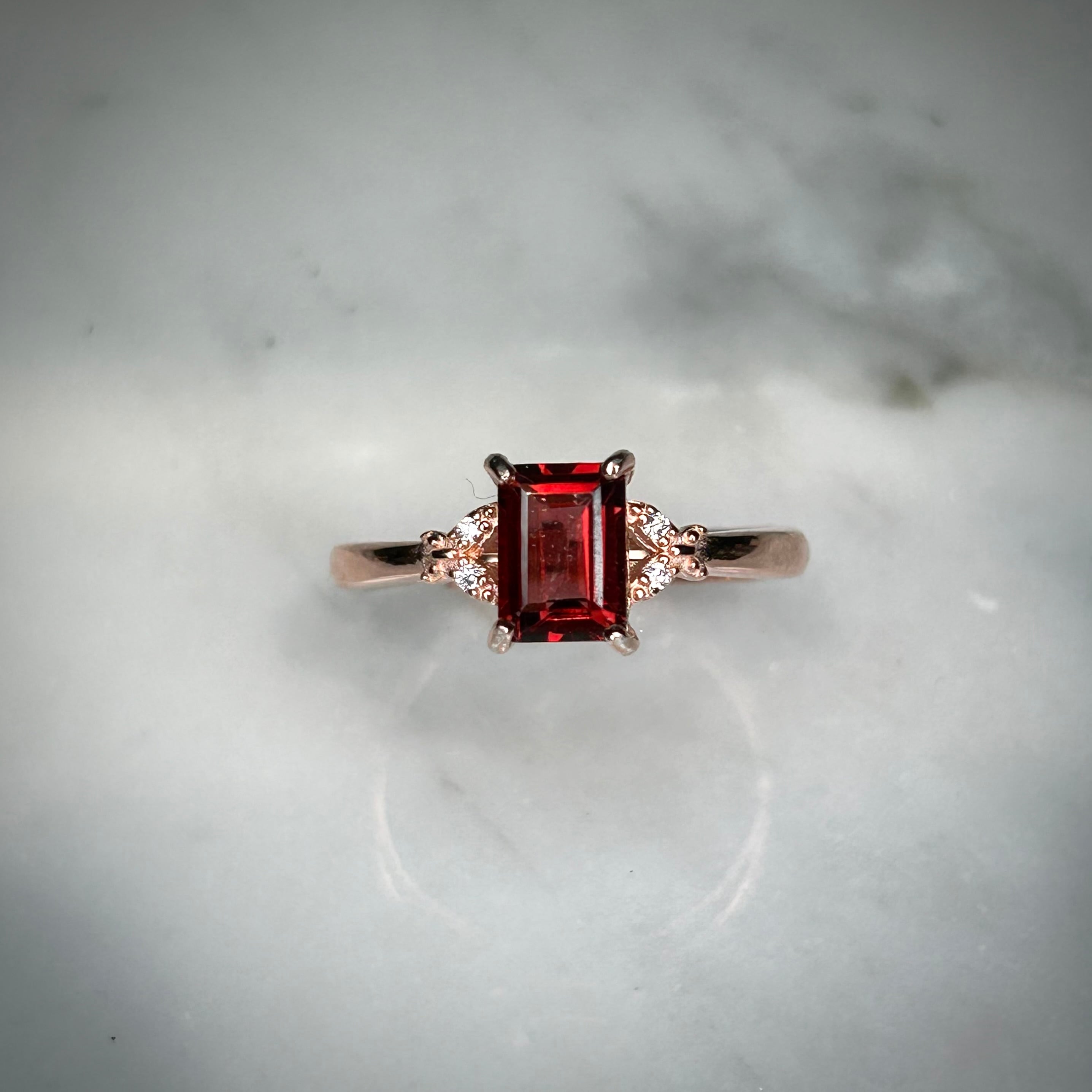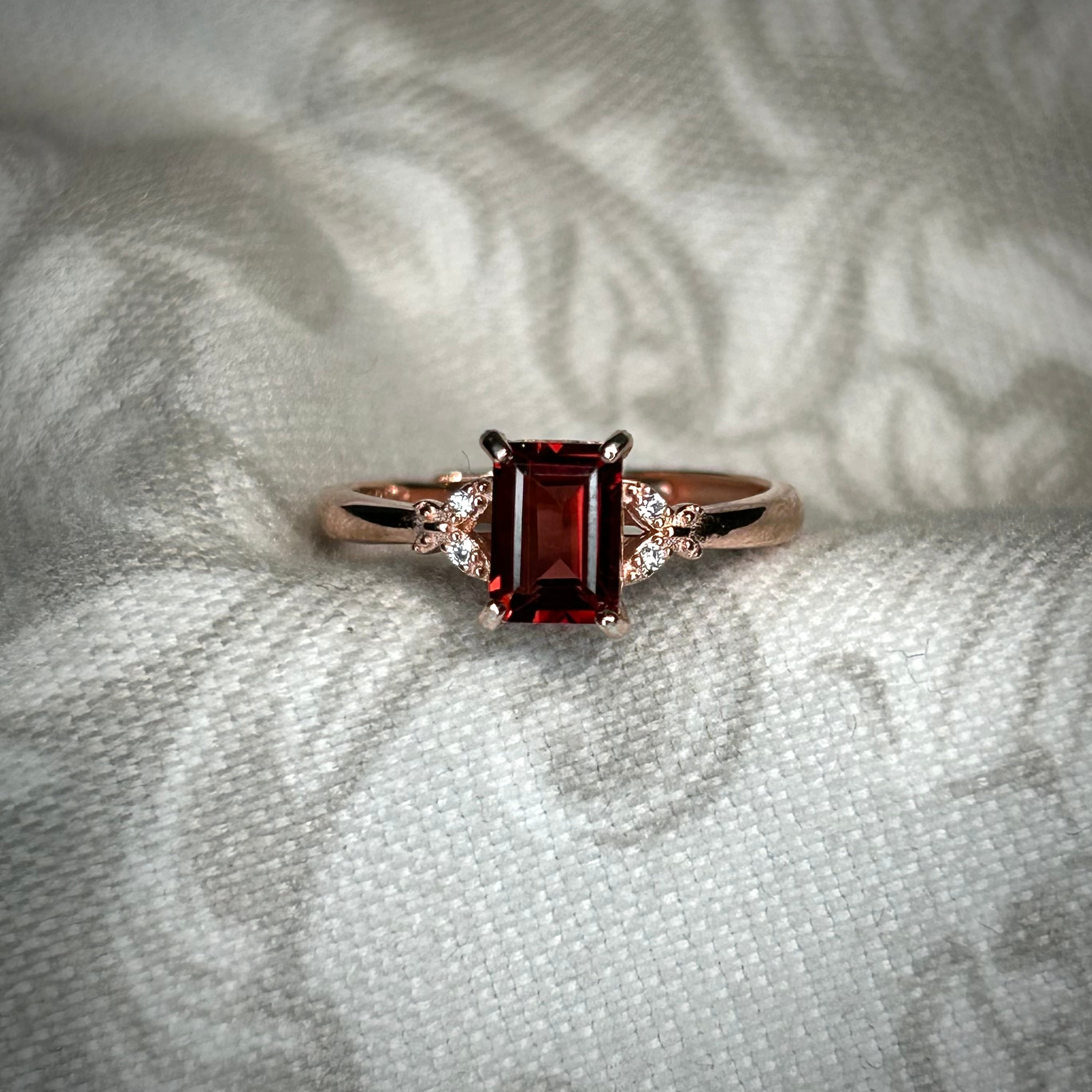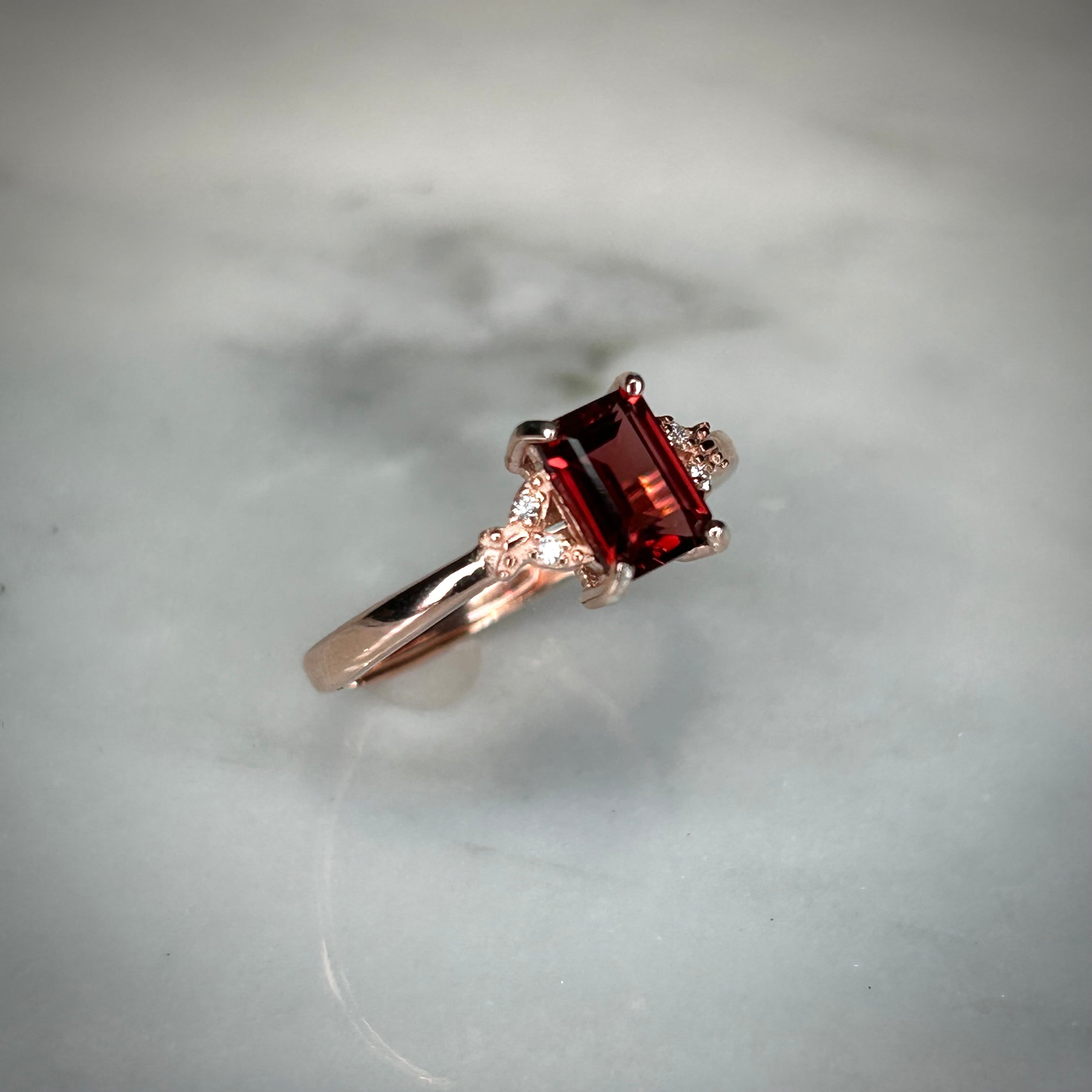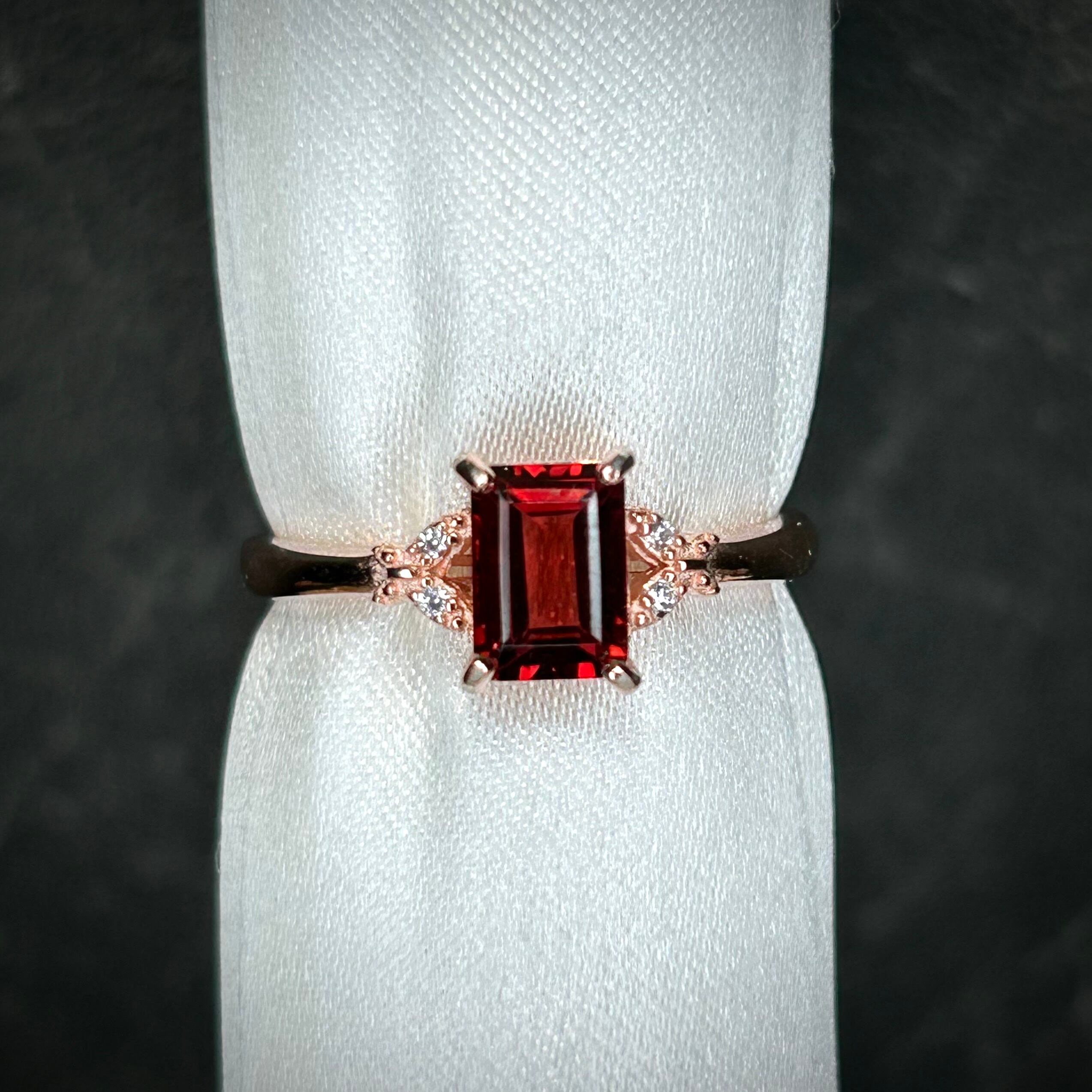ピンクゴールドカラーと相性良い真紅の美しいガーネット。