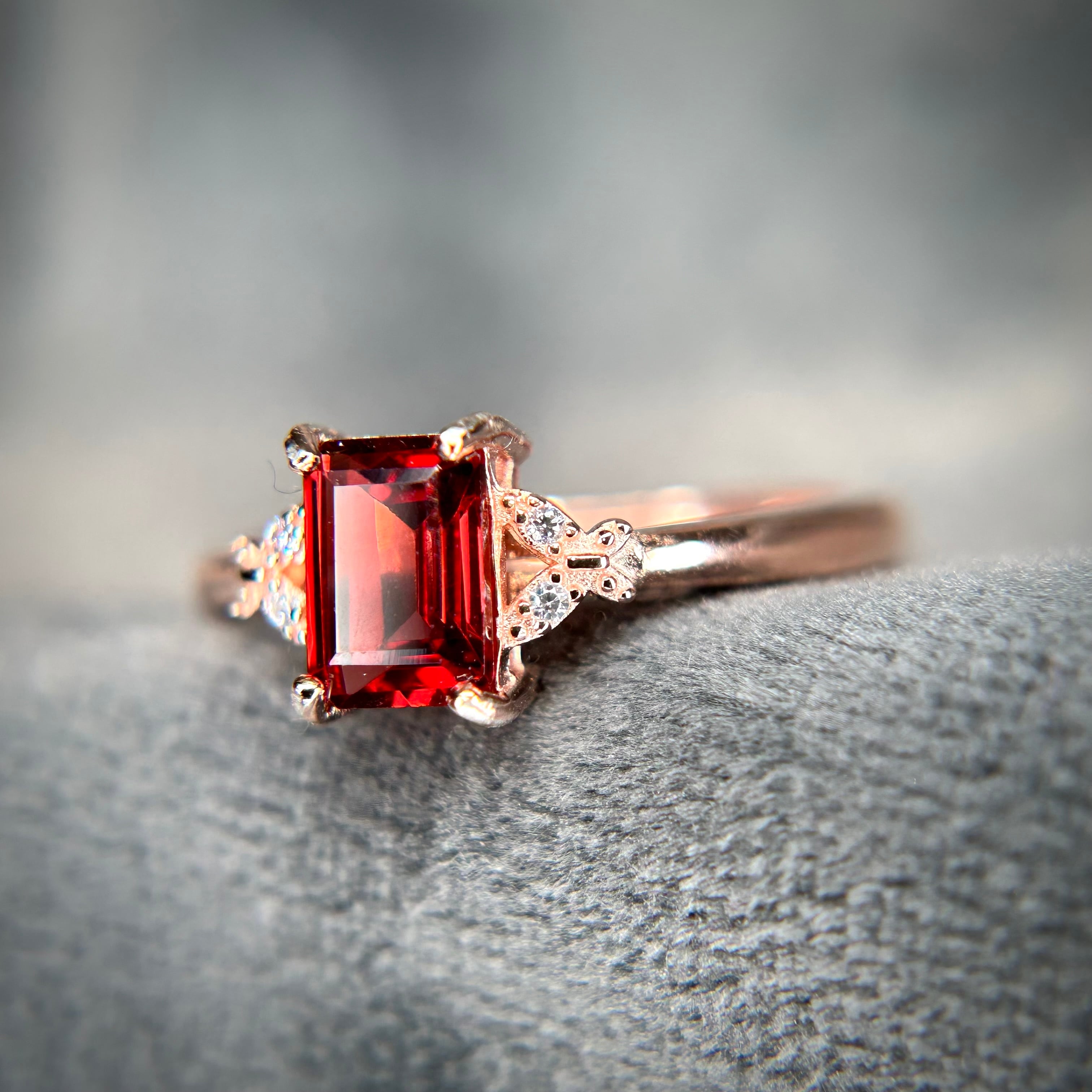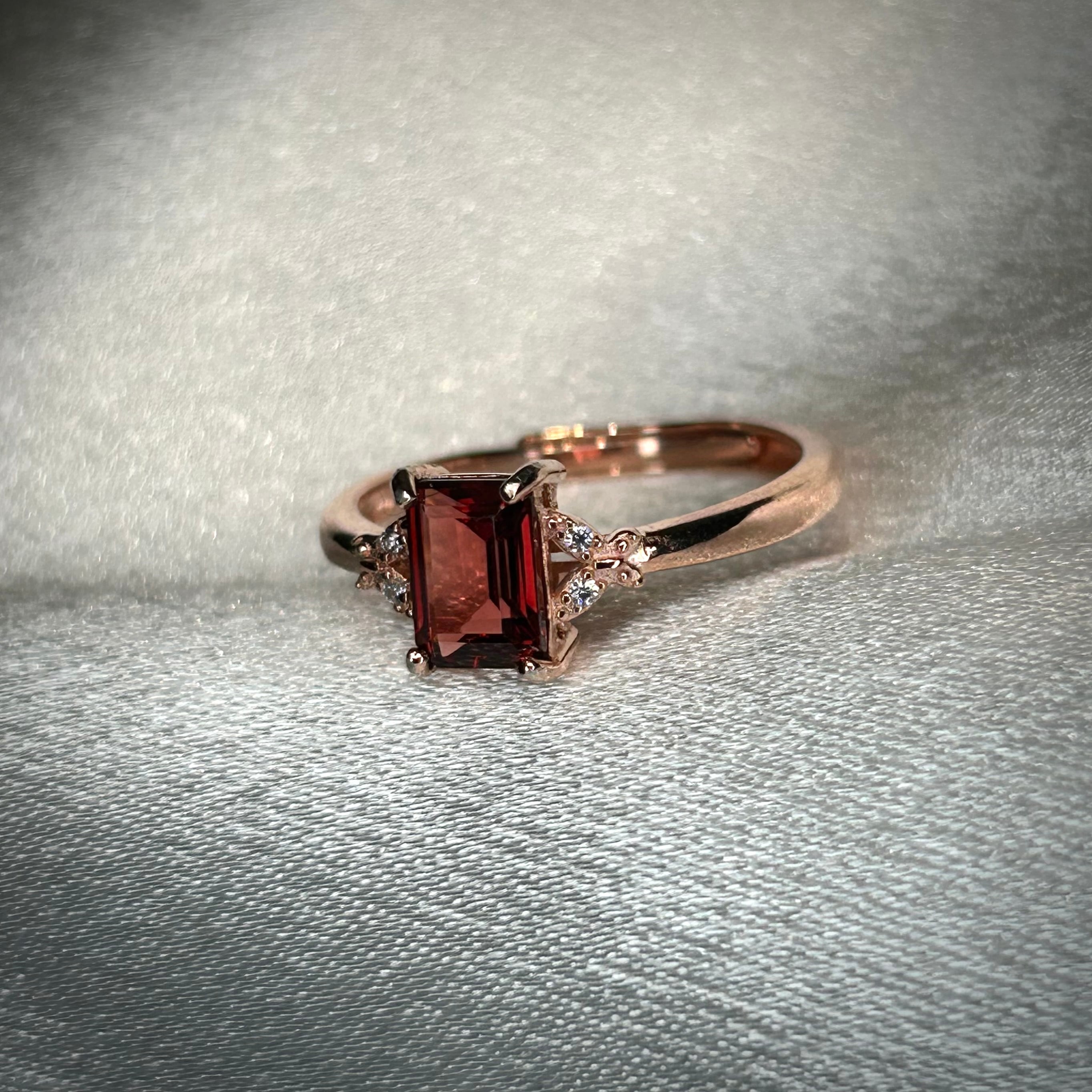 シルバー製ピンクゴールドカラーのガーネットを使ったバタフライリング。
