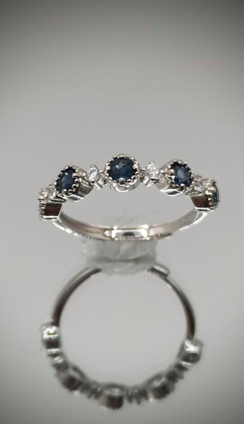 シルバー製 サファイア 5ストーンリング 9月誕生石 フリーサイズ