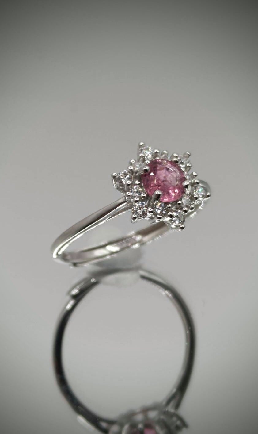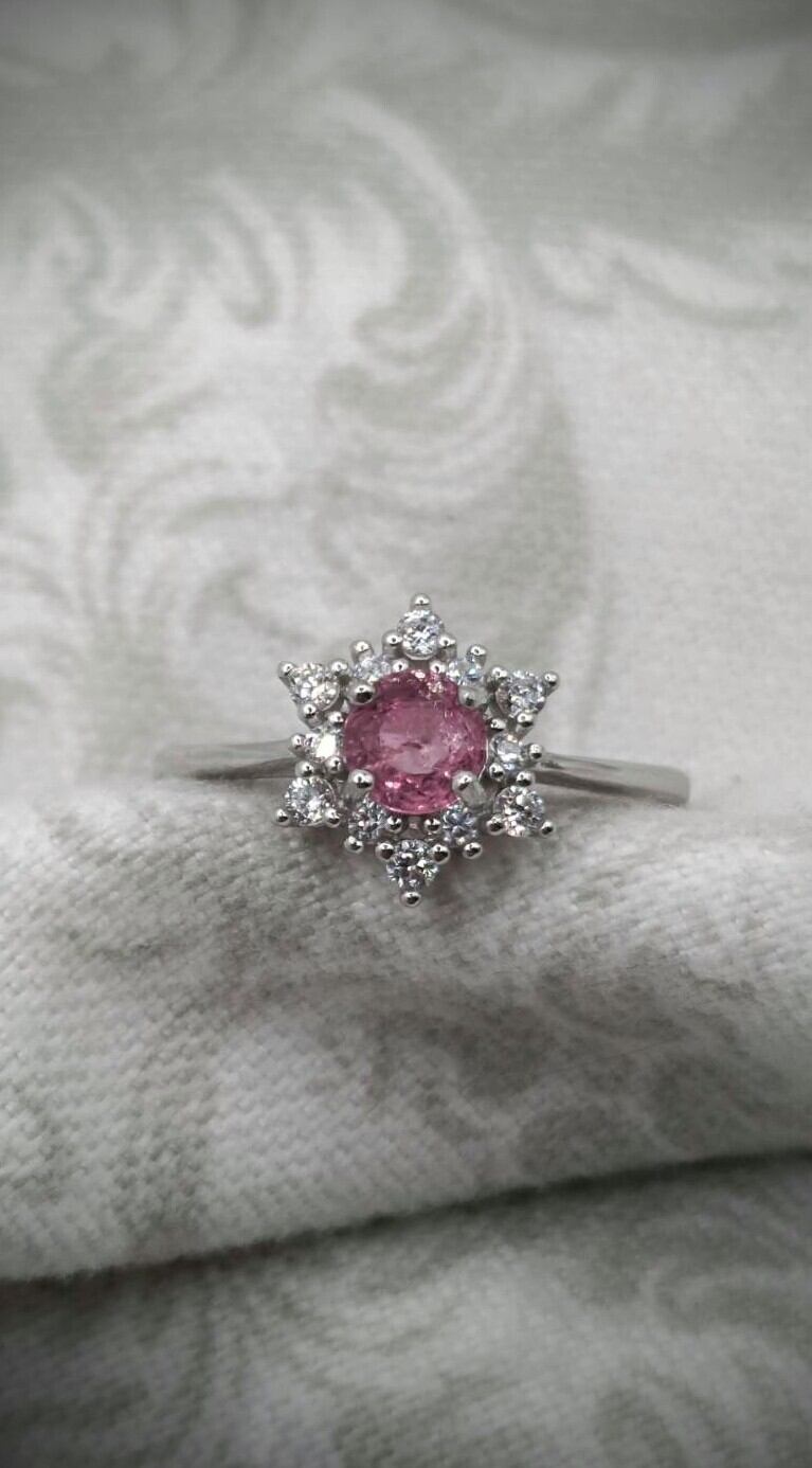 シルバー製ピンクカラートルマリンのフラワーリング。