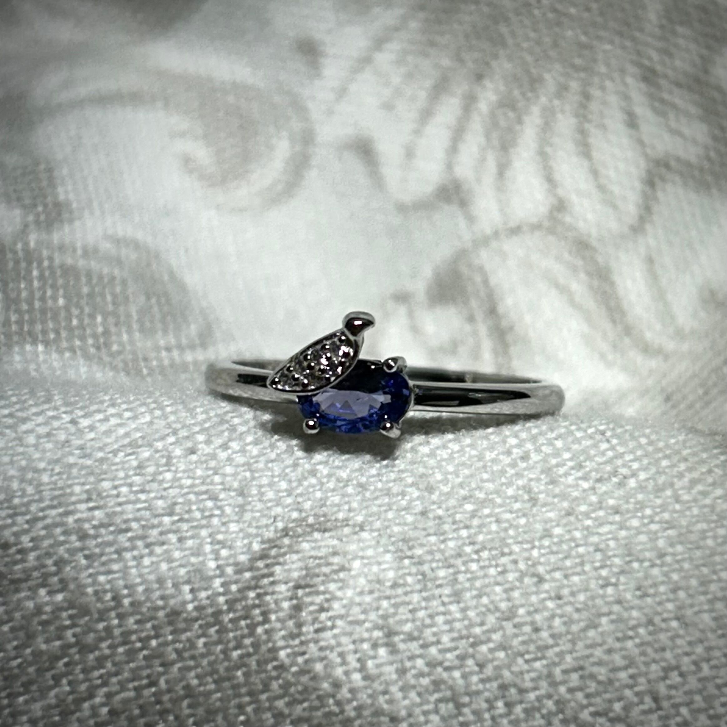鳥モチーフが可愛いですが、タンザナイトの美しさが上品で落ち着いた印象です。