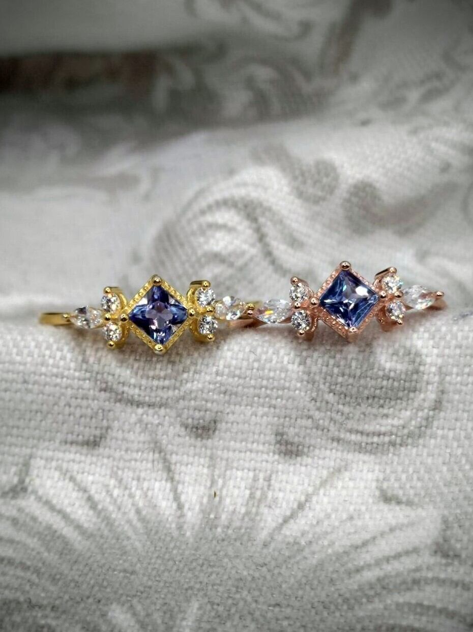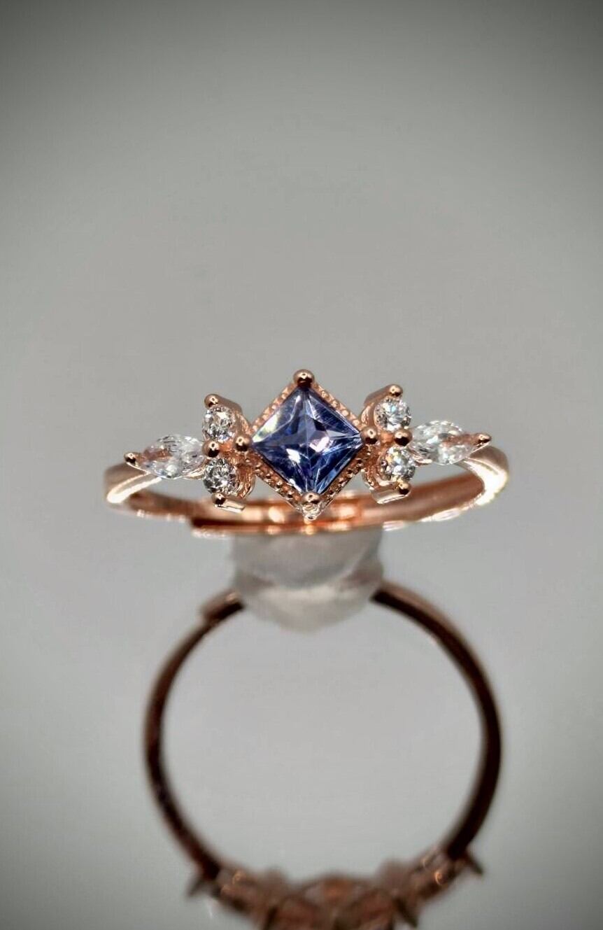シルバー製ゴールドカラー&ピンクゴールドカラー タンザナイト スクエアリング 12月誕生石 フリーサイズ