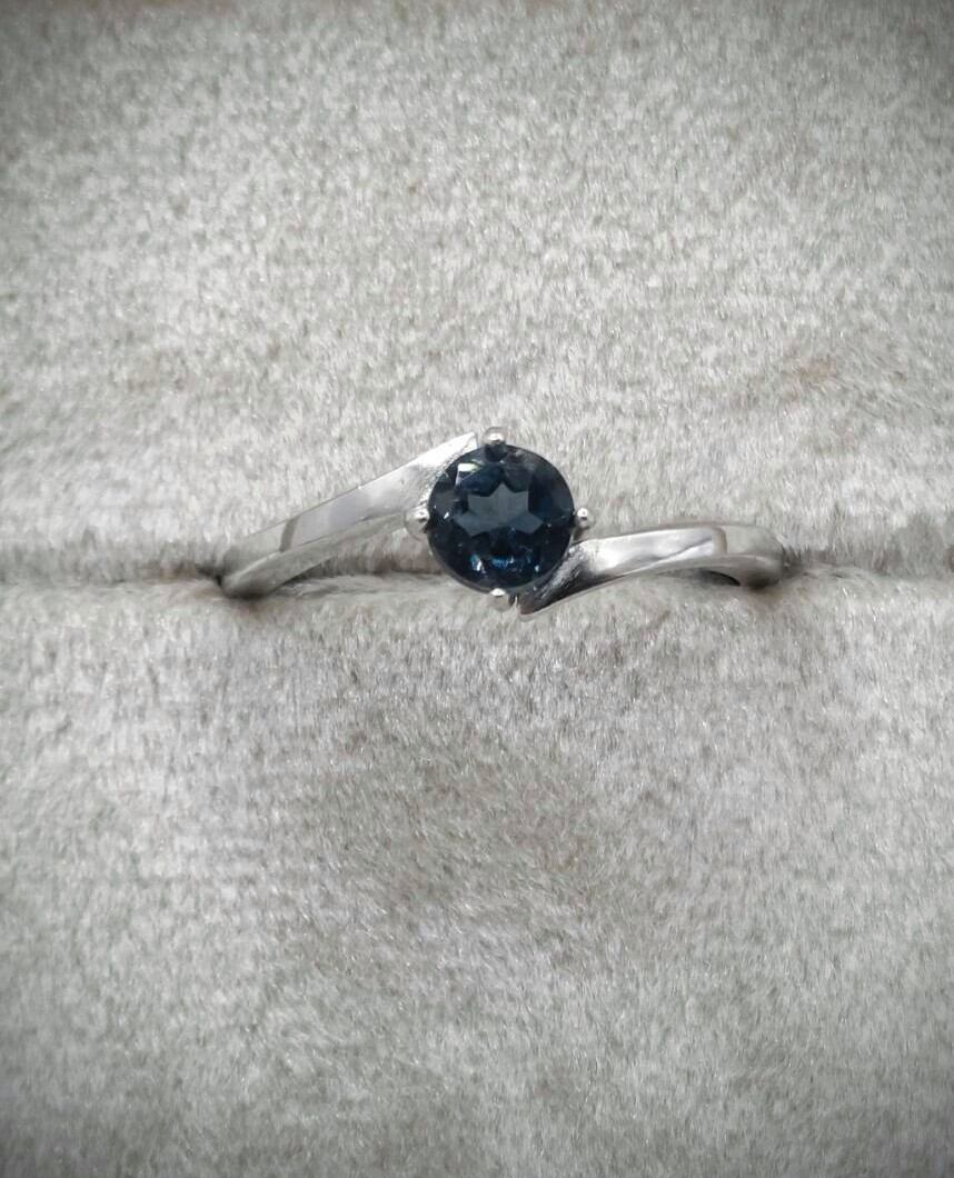 シルバー製ロンドンブルートパーズを使用したバイパスシンプルリング。