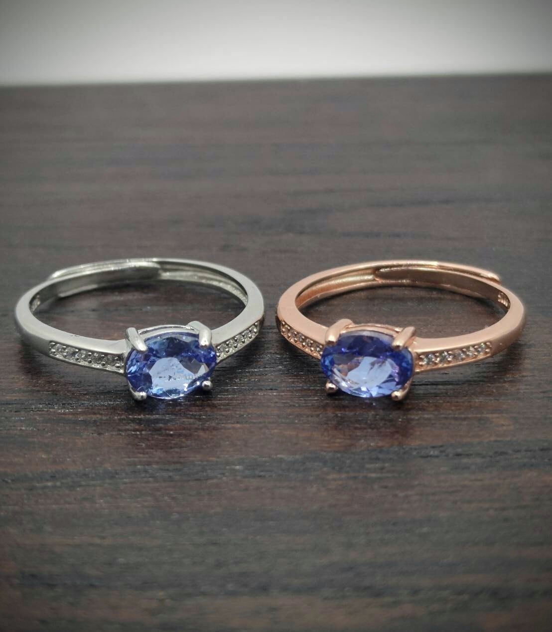 シルバー製シルバーカラー&ピンクゴールドカラー タンザナイト オーバルシンプルリング 12月誕生石 フリーサイズ
