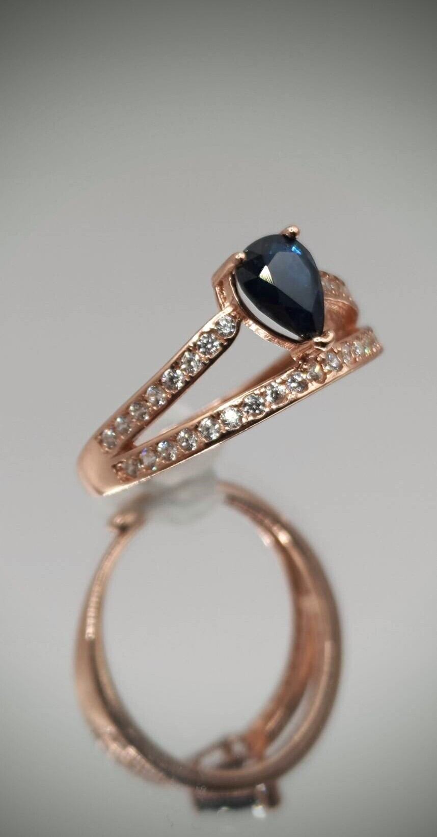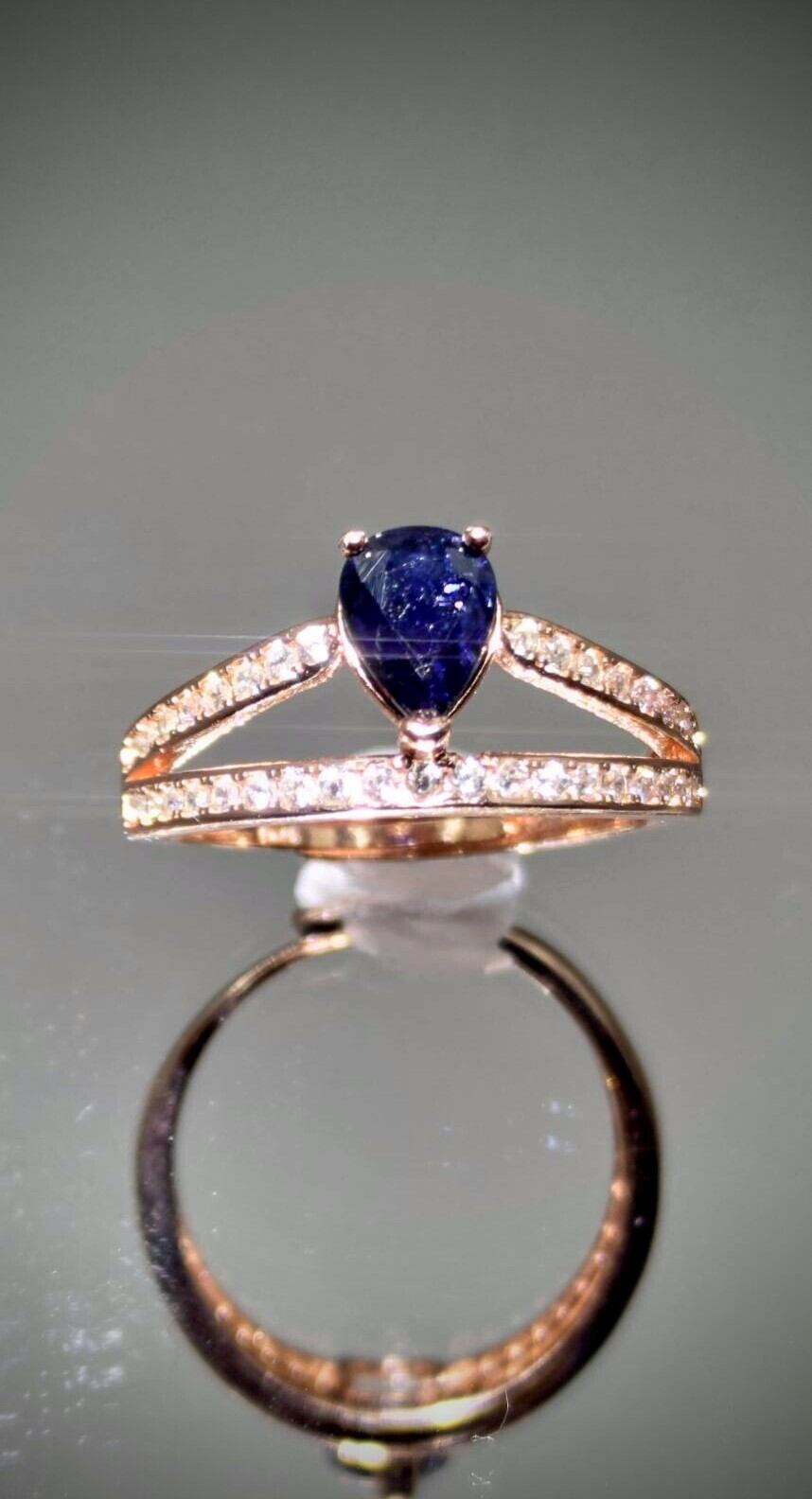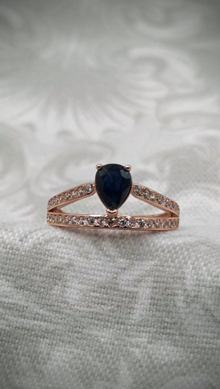 シルバー製ピンクゴールドカラー サファイア ダブルラインリング 9月誕生石 フリーサイズ