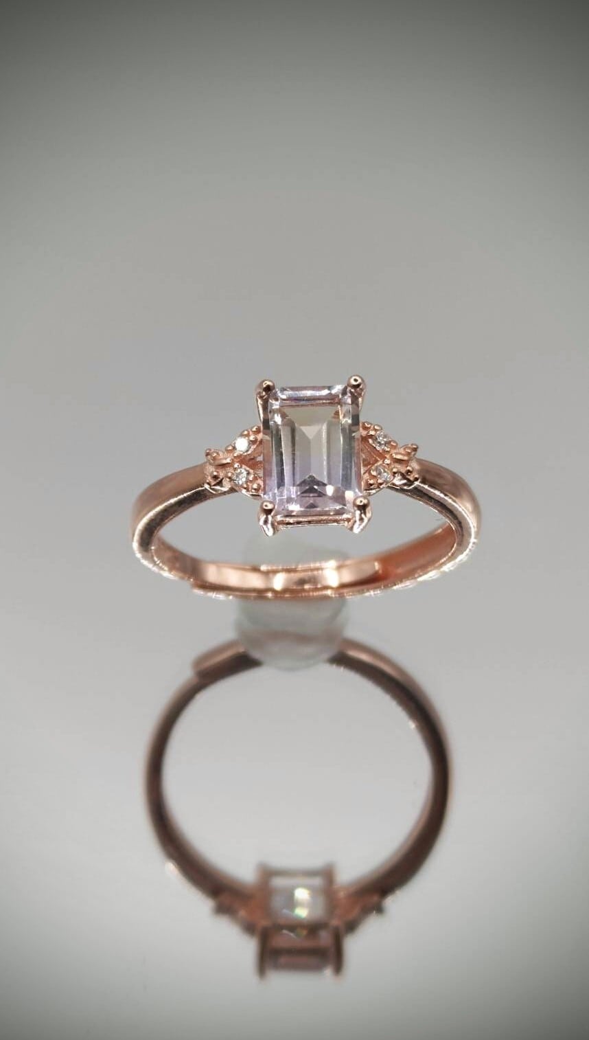 両脇にデザインされた蝶も可愛く、ほっこりさせてくれるリングです。