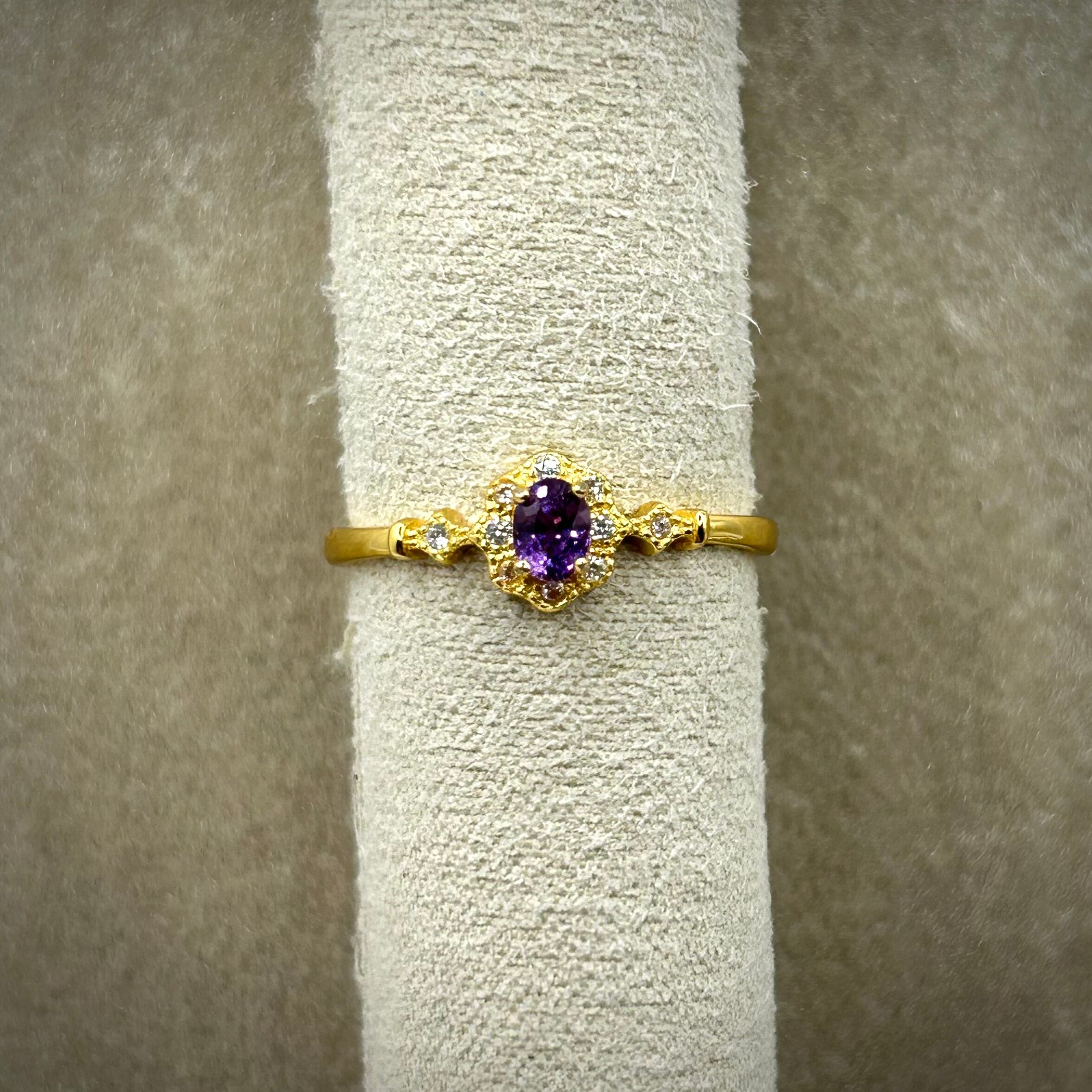 シルバー製ゴールドカラー、パープルサファイアのミニクラシカルリング。