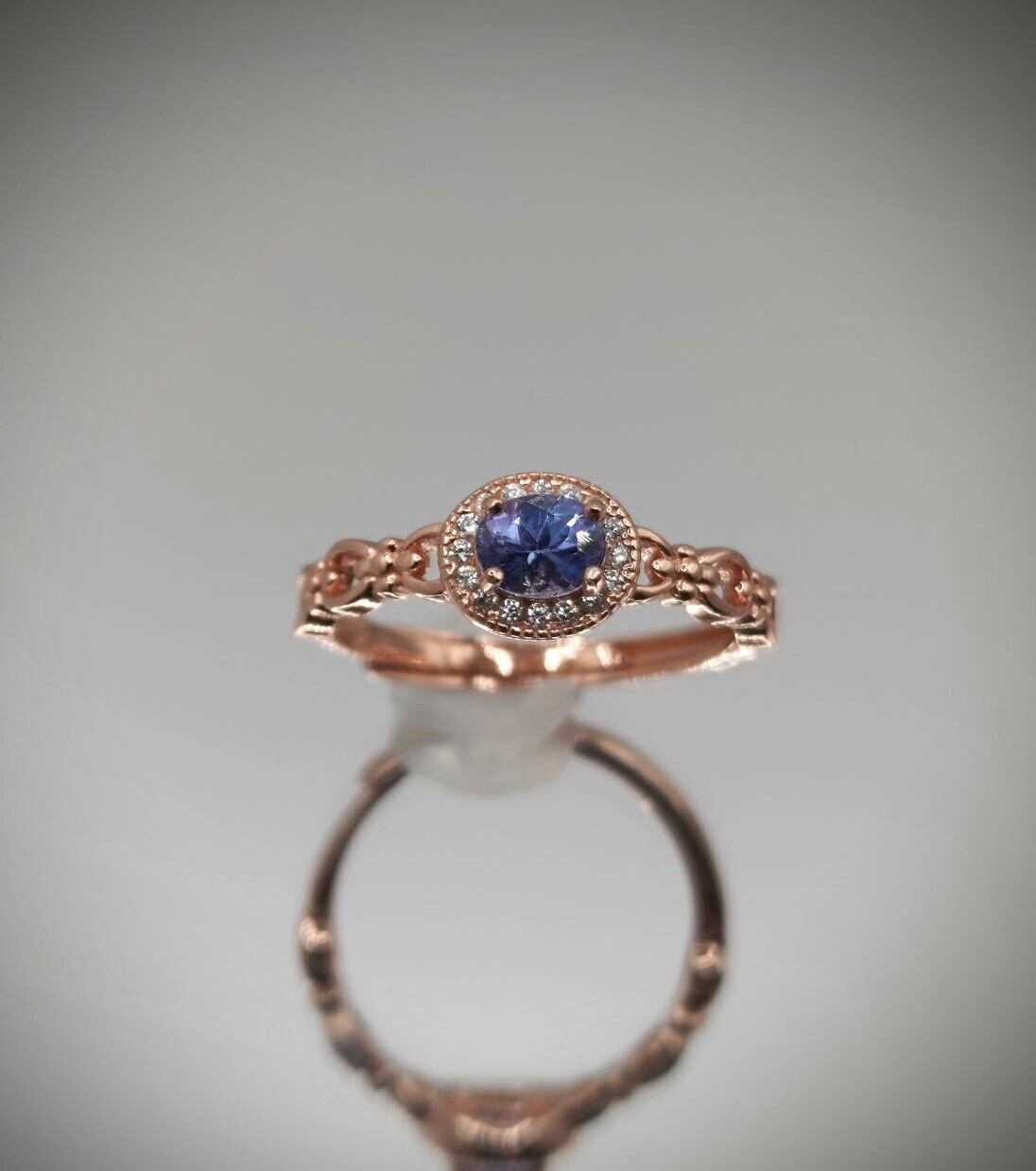 シルバー製ピンクゴールドカラーのタンザナイト使用したデザインチェーンリング。
