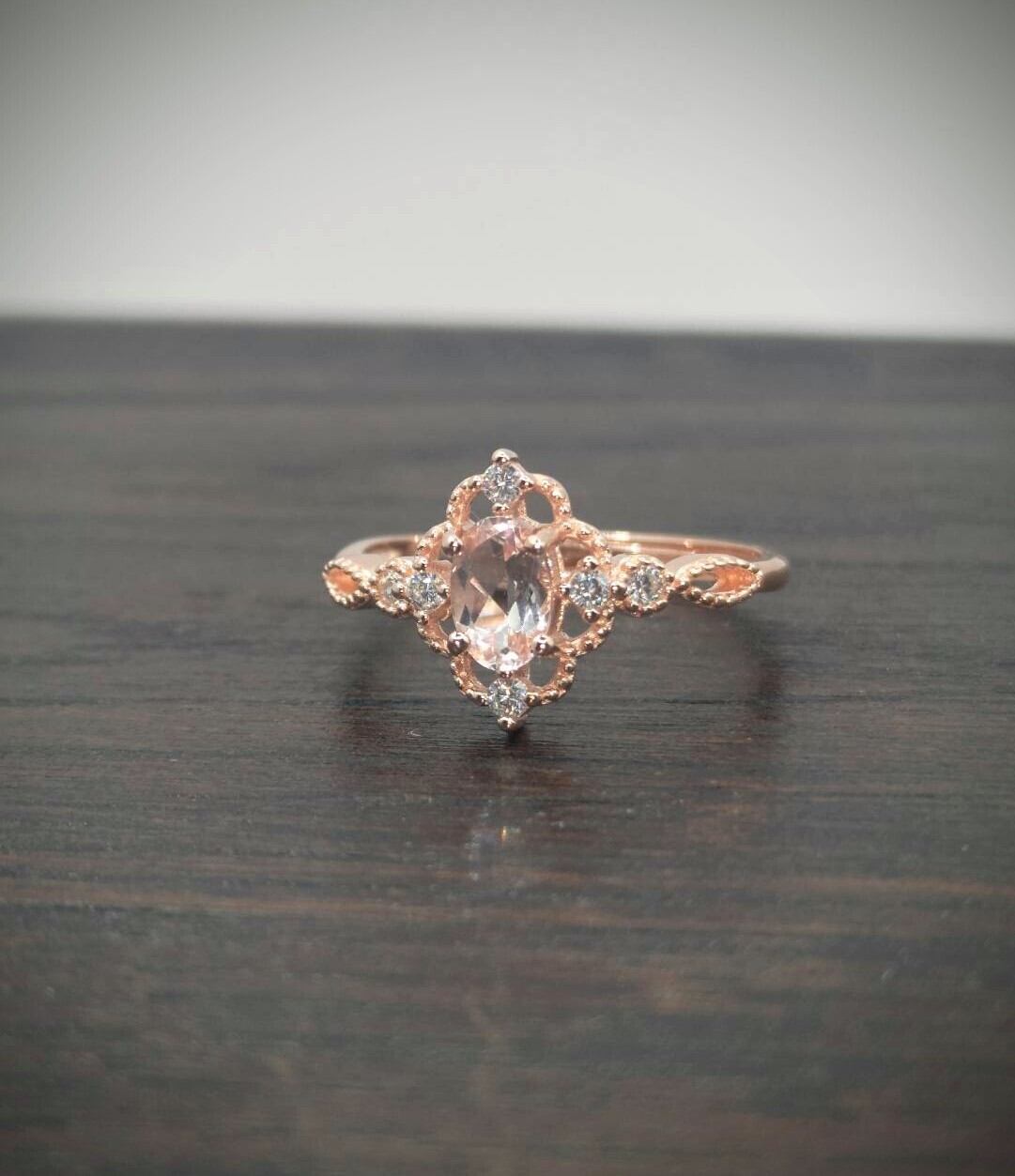 シルバー製ピンクゴールドカラー モルガナイトのクラシカルデザインリング。
