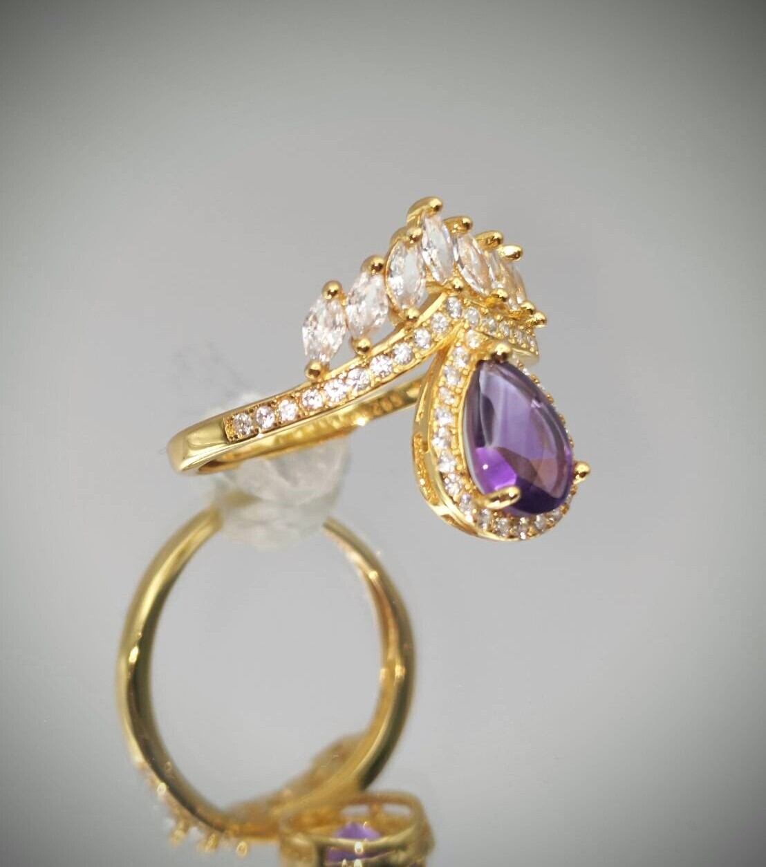 シルバー製ゴールドカラー バフトップアメシスト ドロップティアラリング 2月誕生石 12号以上の使用推奨