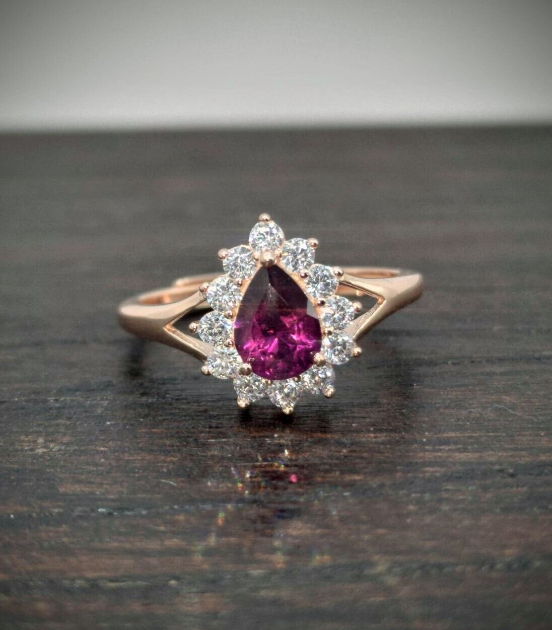 グレープカラーとピンクゴールドカラーの組み合わせが可愛いリングです。