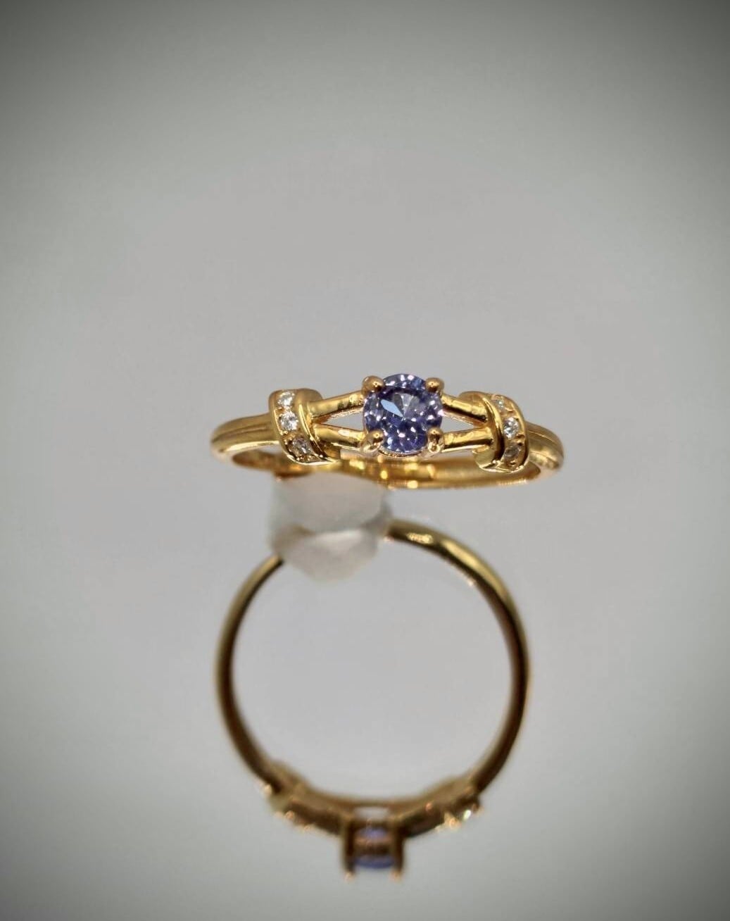結び目(ノット)のようなデザインに使用したのは美しい青紫のタンザナイト、シンプルなデザインだからこそタンザナイトが引き立ちます。