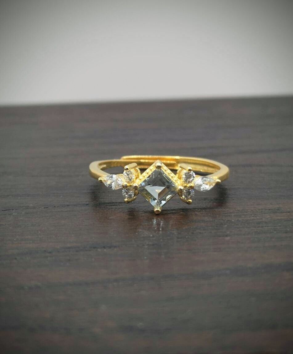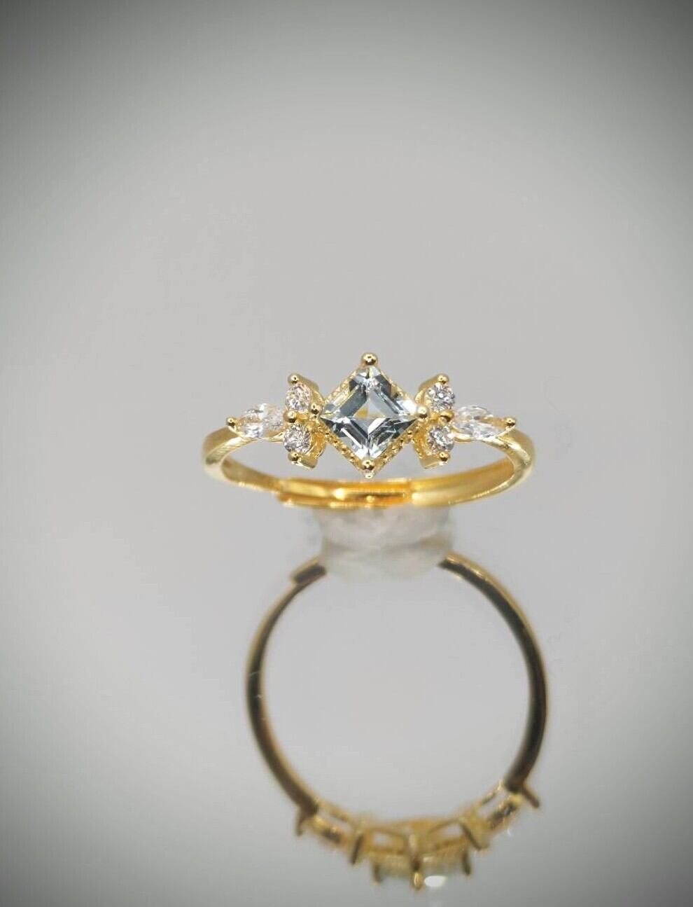 シルバー製ゴールドカラーのアクアマリンを使用したスクエアリング。
