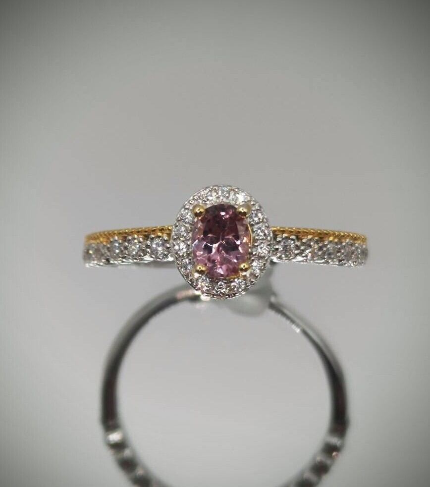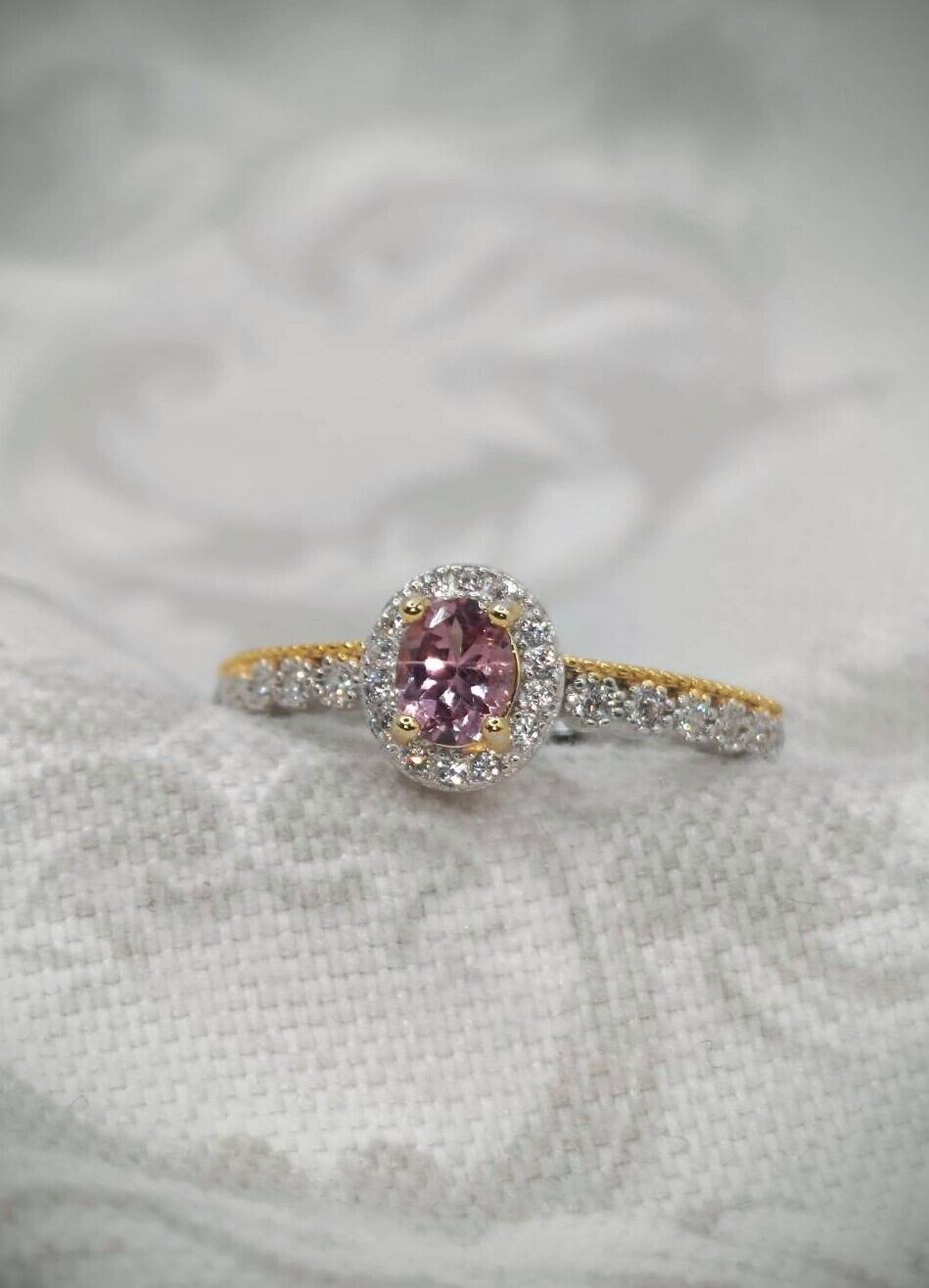 コンビカラーですがシンプルなデザインなのでガーネットの魅力を楽しめるリング。