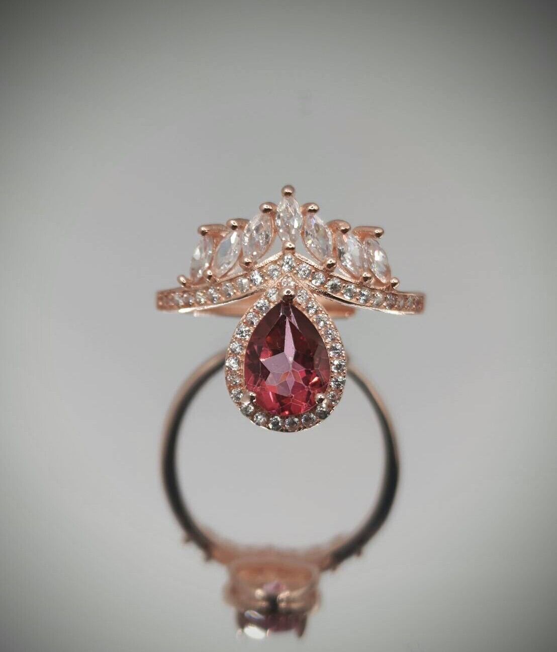 シルバー製ピンクゴールドカラーのトパーズを使用したドロップティアラリング。
