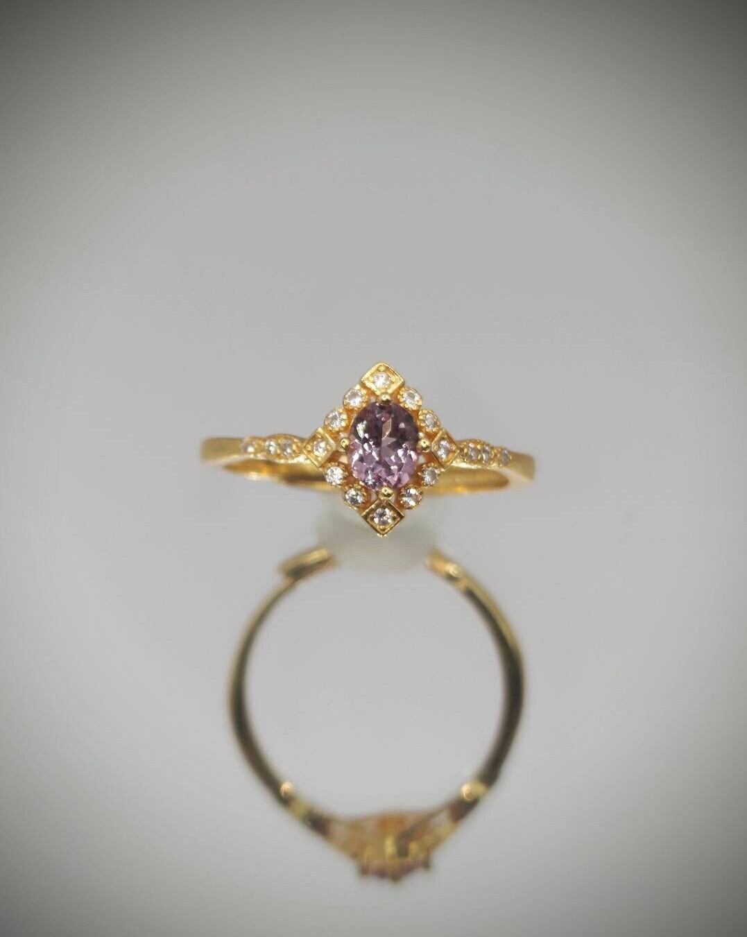 菱形デザインにオーバルカットのカラーシフトガーネットを使用したリング。