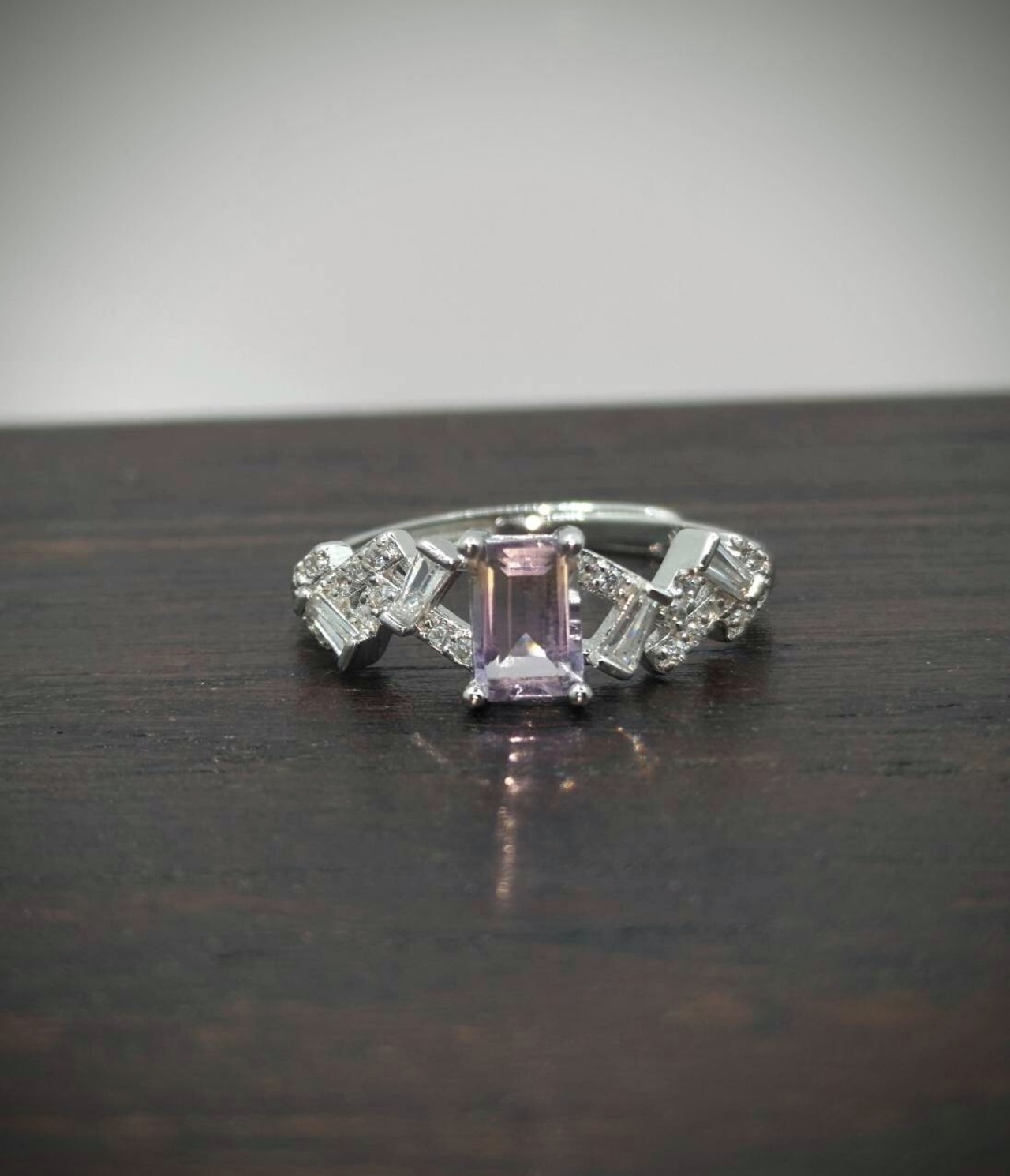 シルバー製 アメトリン バゲットリング フリーサイズ