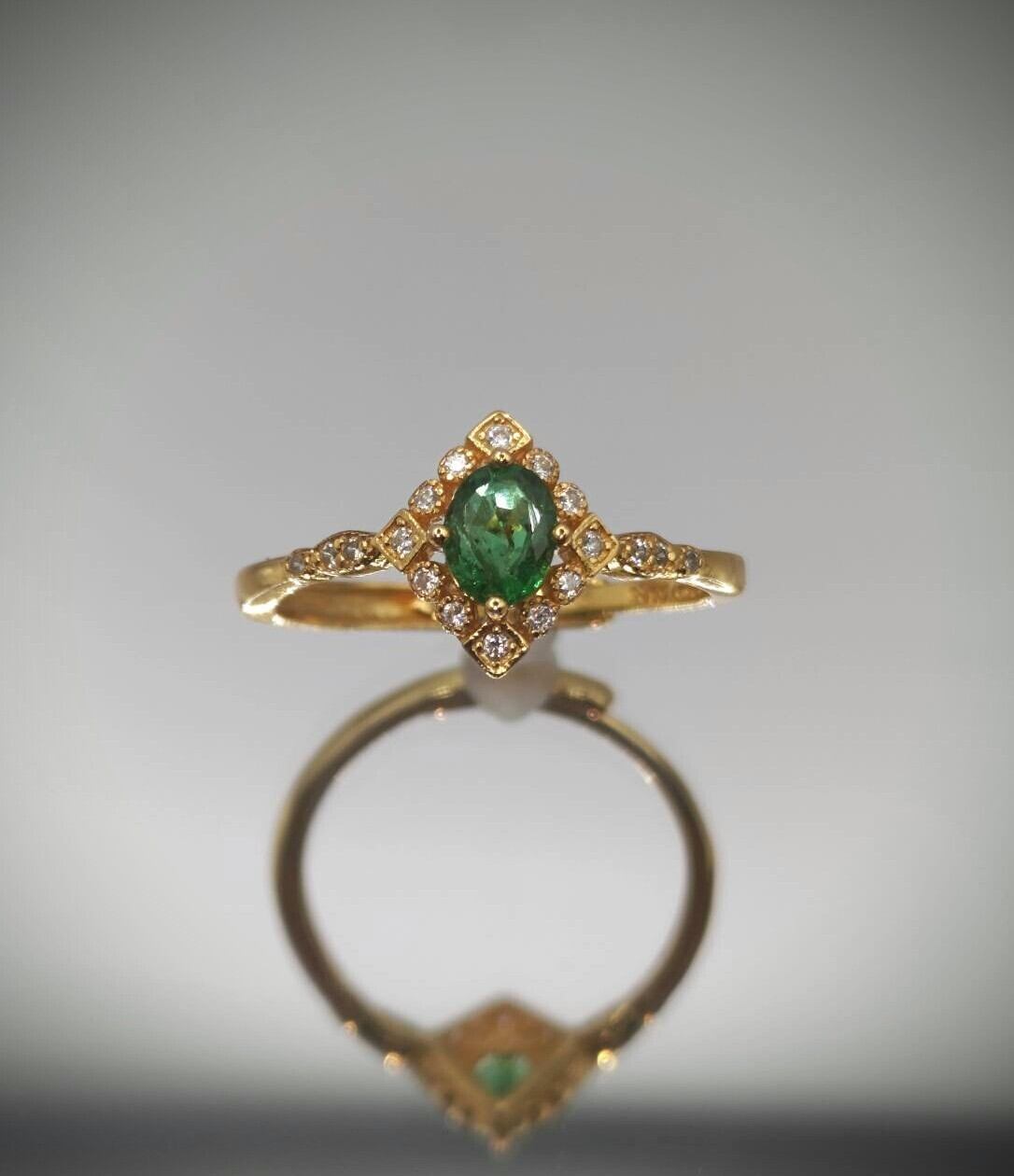 濃いグリーンカラーのザンビア産エメラルドを使用したリング。