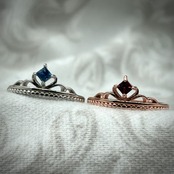 シルバー製シルバーカラー&ピンクゴールドカラー サファイア シンプルティアラリング 9月誕生石 フリーサイズ