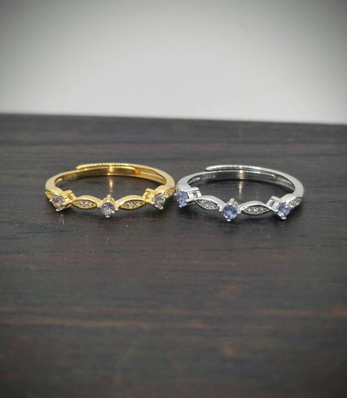 約2mmの小粒なタンザナイトを3石使用したリング。