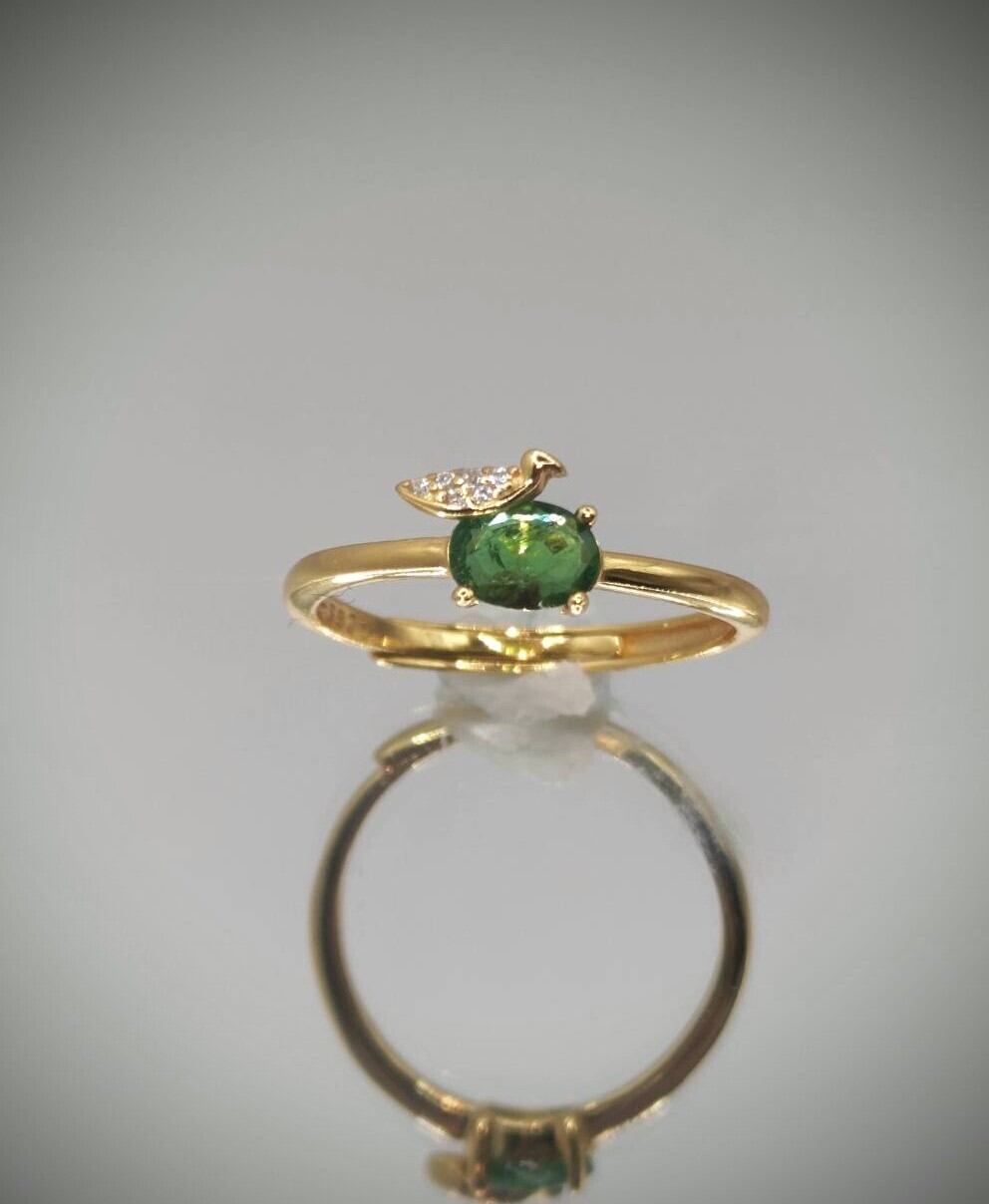 シルバー製ゴールドカラー エメラルド トリリング 5月誕生石 フリーサイズ